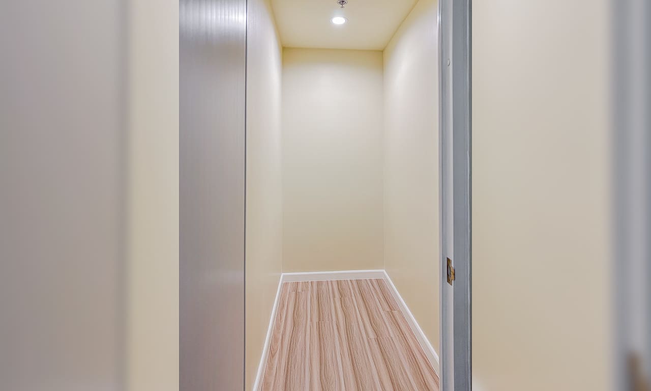 The kitchen includes overhead and base cabinets in a contemporary wood finish, providing both style and functionality. Both bedrooms are well-lit and versatile—ideal as a master room, guest room, or home office. A dedicated utility/storage room adds valuable convenience for everyday living. The bathroom is equipped with modern fixtures, neutral tiles, and a rainshower head, offering a fresh and relaxing atmosphere.