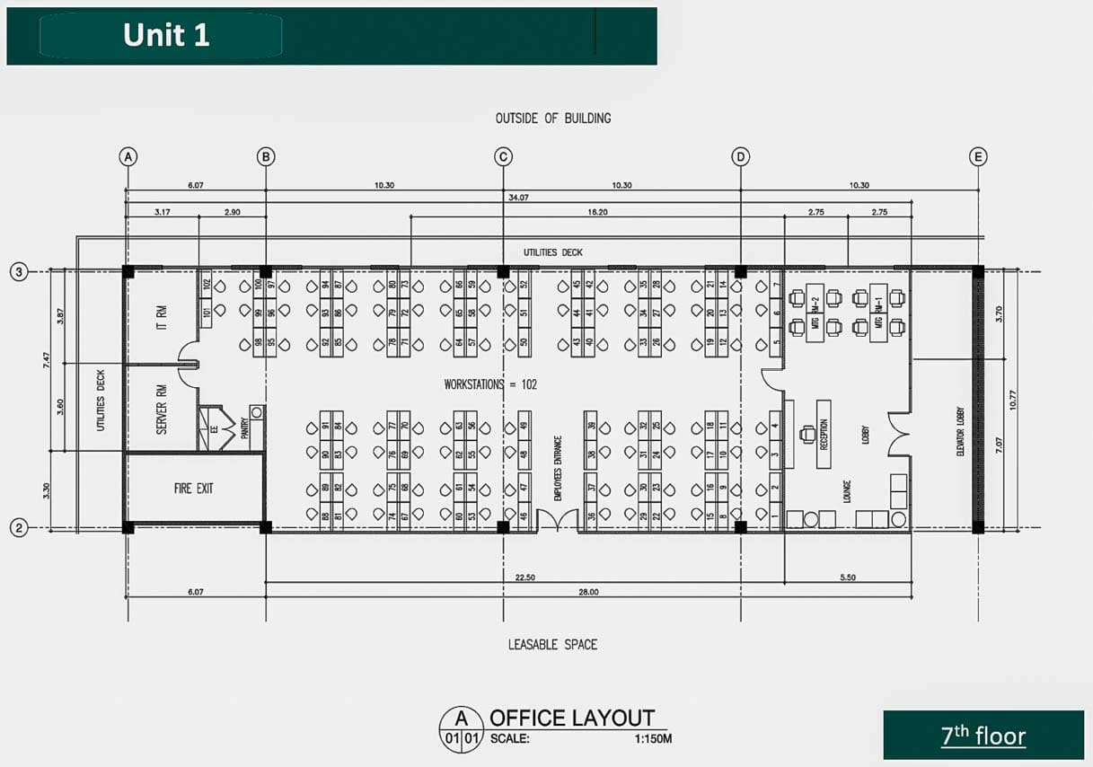 • Finished ceiling with acoustic boards,T-runners, Fire Sprinkler and Automatic Smoke/FireDetectors