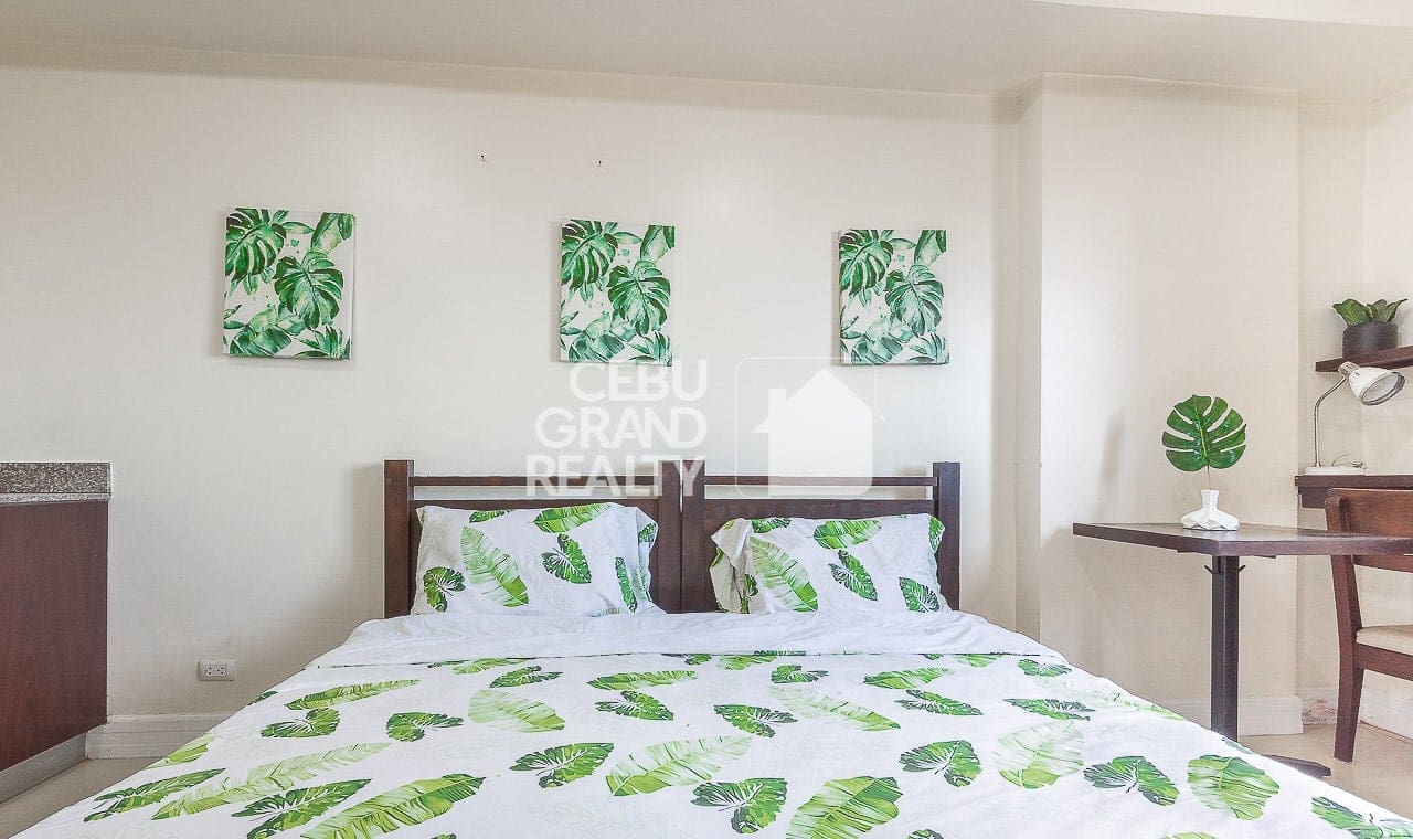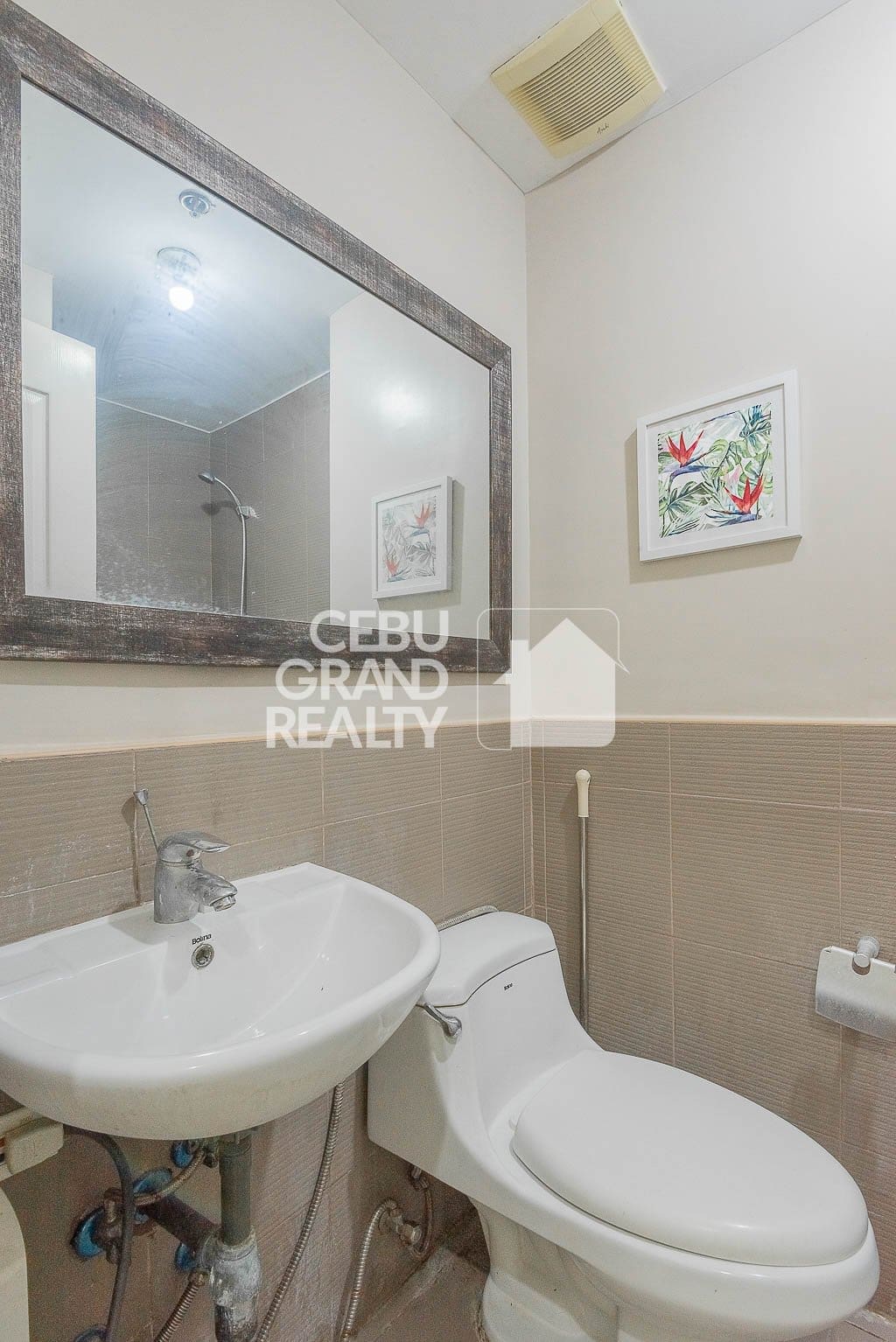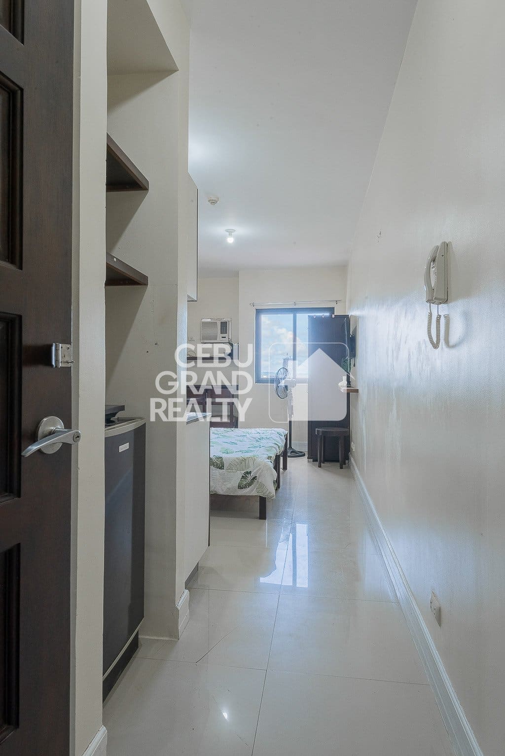 Still searching for an Affordable Studio for Rent in Grand Residences? Look no further! This fully furnished unit also boasts a functional workspace with a table and chairs positioned beside a large window, providing natural light and stunning city views. The bathroom is equipped with modern fixtures, including a pedestal sink, toilet, and tiled shower area, all designed with clean, neutral tones. With a wall-mounted TV, air-conditioning unit, and wardrobe for storage, this property truly offers the best in studio living near Cebu IT Park.