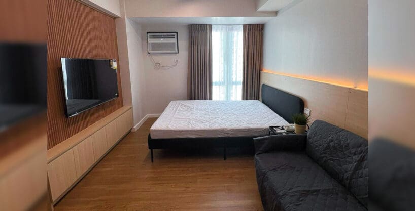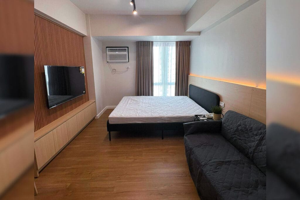 Inside the studio, a sophisticated ambiance welcomes your home. The open layout and high ceilings create an airy, uplifting atmosphere perfect for relaxation or inspiration. As the sun sets, soft golden hour light fills the room, and the glittering skyline of Cebu Business Park emerges through expansive windows. This Bright Brand-New Beautiful Studio for Rent isn’t just a place to live; it’s a lifestyle statement. It’s where you can host intimate wine nights with a view of the city lights or simply savor a peaceful moment above the urban fray.