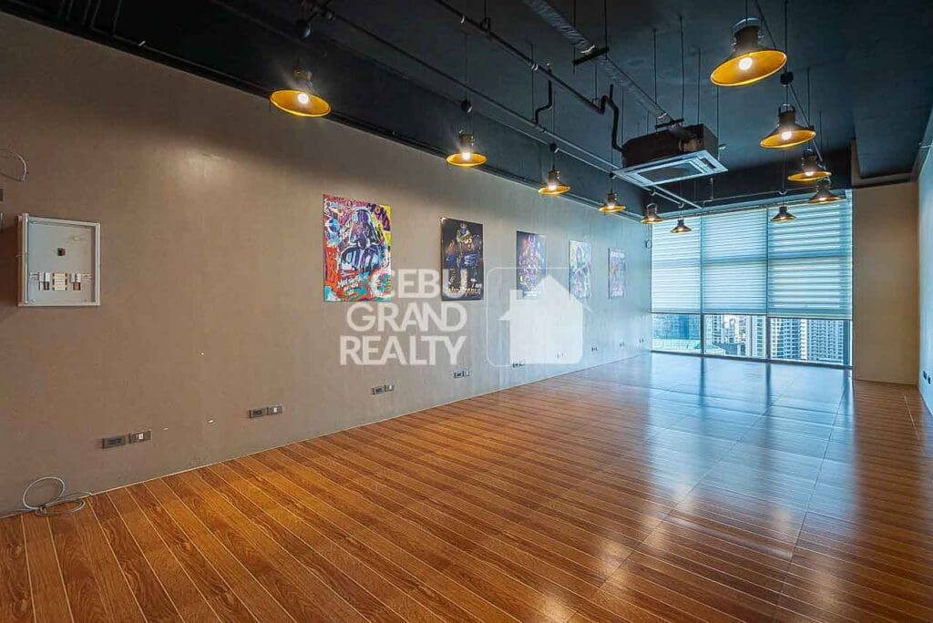 Experience a professional and inspiring workspace in this Bright Fitted Office with City Views. Located in Latitude Corporate Center, it is a fitted office for rent in Cebu Business Park. Designed with a modern industrial aesthetic, the office features wood-style flooring, exposed black ceilings, and warm pendant lighting. This creates a sleek yet creative atmosphere ideal for startups, boutique firms, and professional teams.