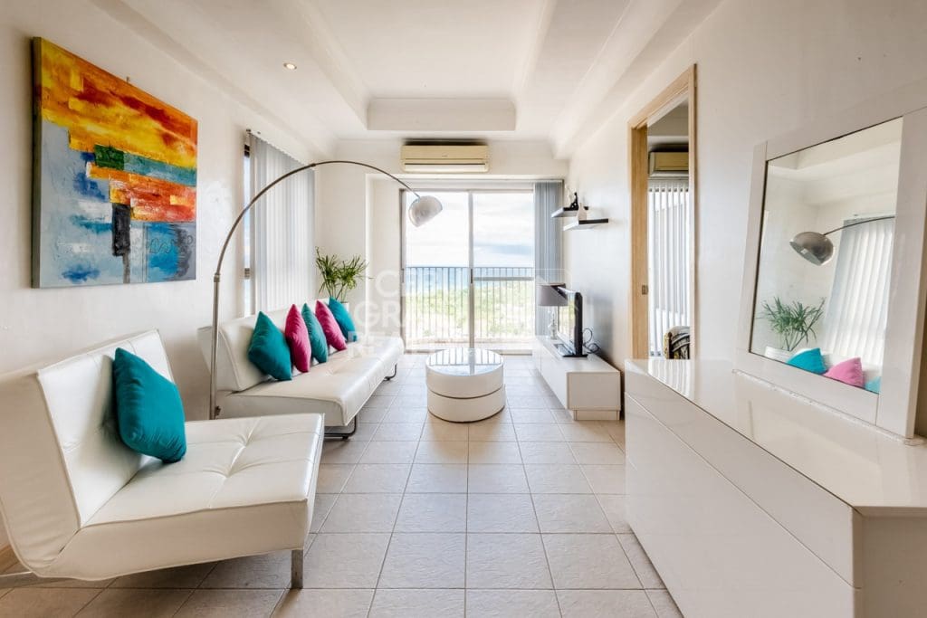 Welcome to this stunning modern ocean view apartment for sale in Cebu, where luxury meets comfort. This bright and airy living room with an ocean view offers the perfect setting for relaxation and entertainment. The cozy bedroom with colorful decor is designed to maximize natural light, creating a bright and welcoming atmosphere. The compact kitchen with wooden cabinets is both functional and efficient, perfect for quick meal preparations. The minimalist living room with an ocean view in Cebu City is a visual delight, ensuring comfort and style in every corner.