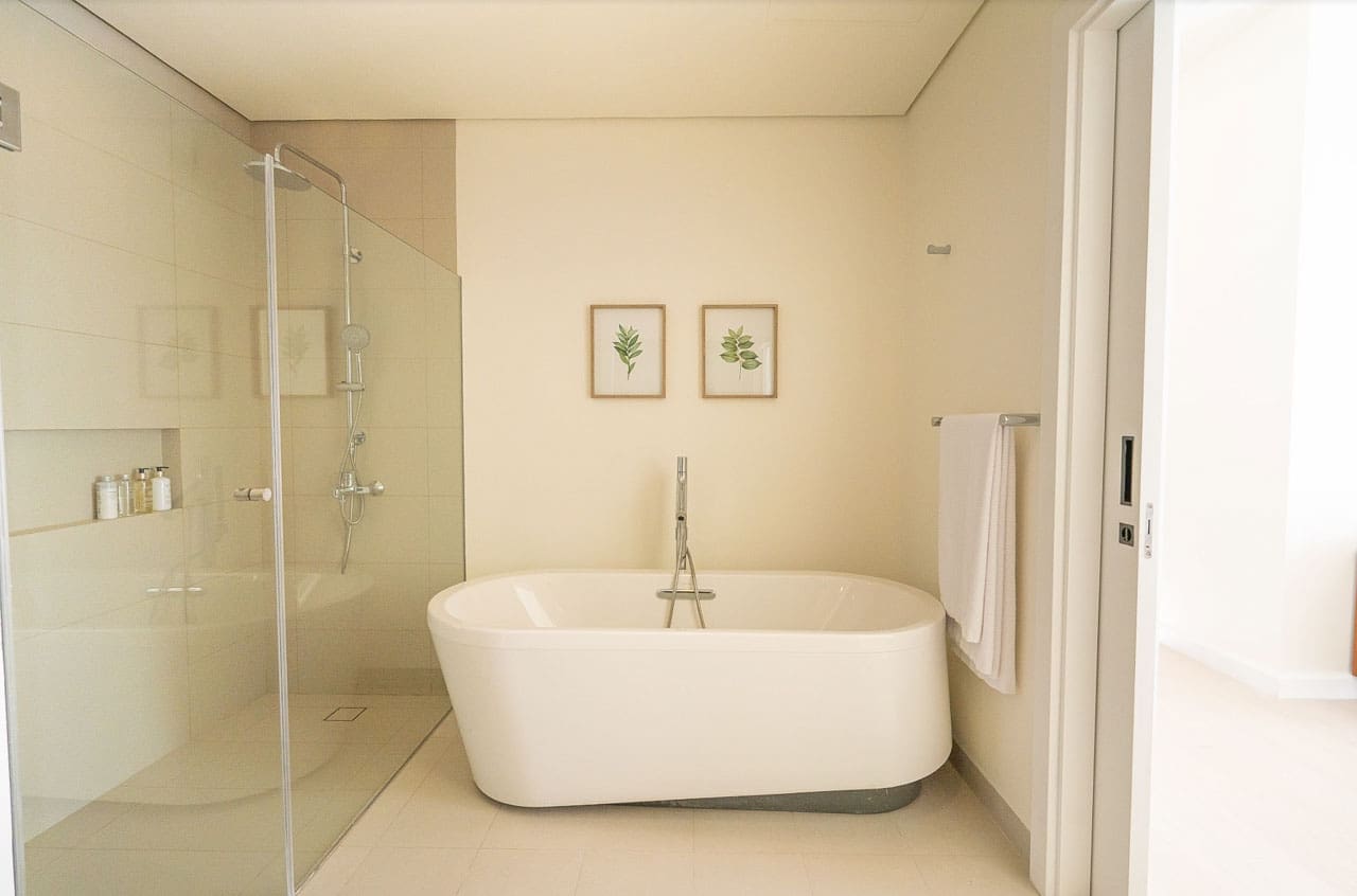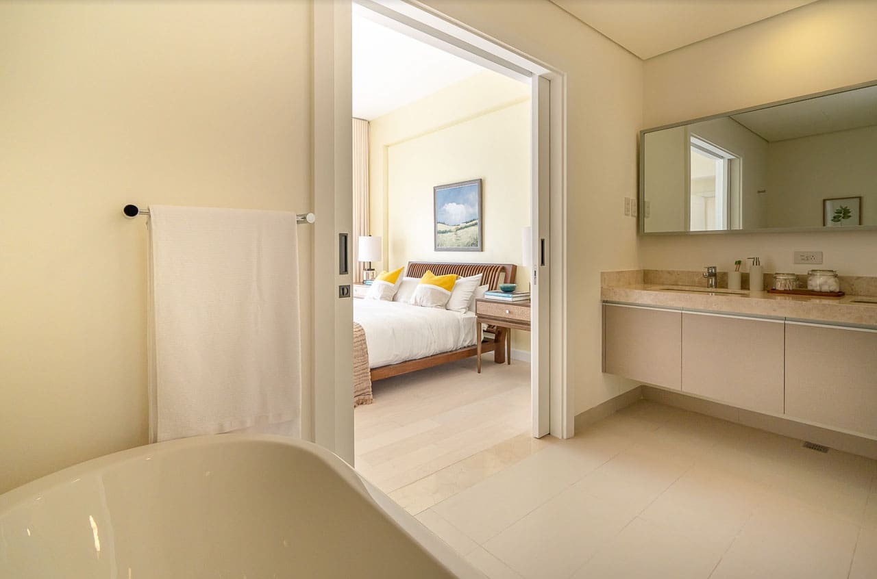 Retreat to the comfortable bedroom, designed for ultimate relaxation, and enjoy ample storage with a spacious walk-in closet. The spa-inspired bathroom offers a freestanding soaking tub and a glass-enclosed rain shower — an invitation to unwind after a long day.