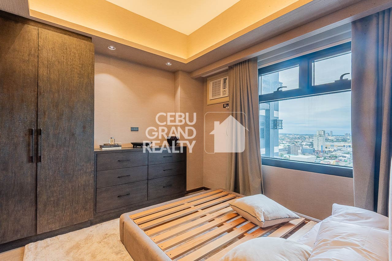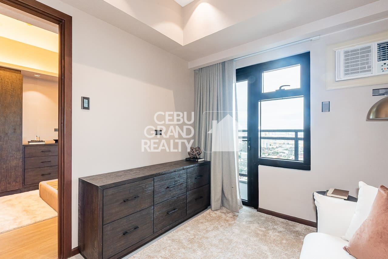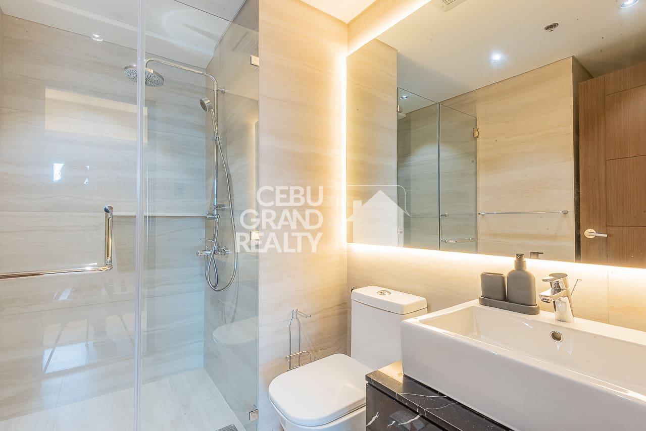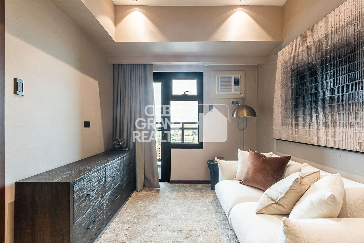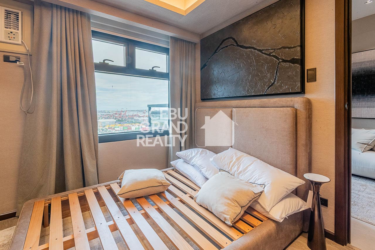 Next, the bedroom serves as a private sanctuary. It features a queen-sized bed and a large picture window. As a result, you can enjoy the dynamic skyline from your room. However, the true highlight remains the outdoor space. A glass door opens to a private balcony. Here, you can unwind and enjoy panoramic vistas of the Mactan Channel. Similarly, the bathroom complements this luxury with a spa-like rain shower. Therefore, do not miss this opportunity. Finally, lease this Elegant Spacious Condo with Balcony and Sea View today. It is, without a doubt, a home where style meets spectacular scenery.