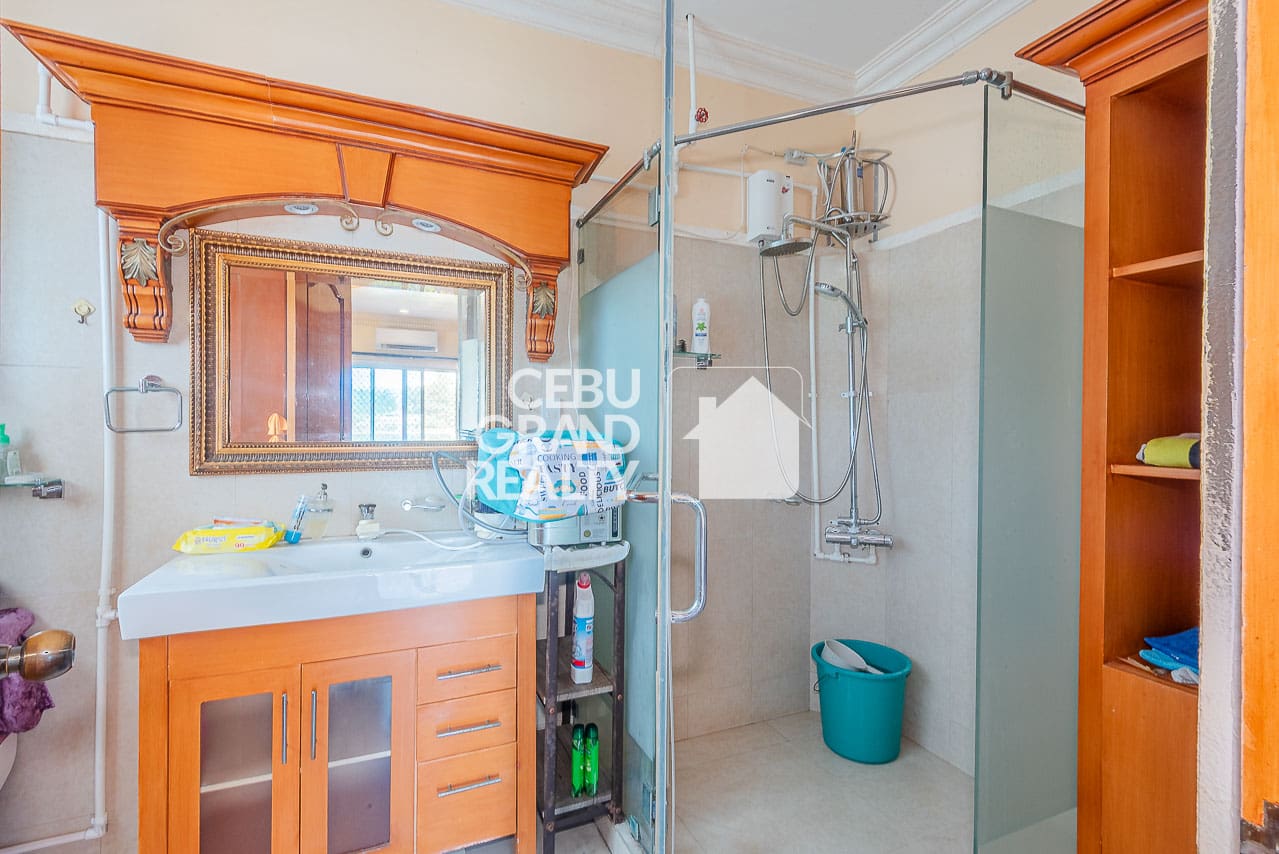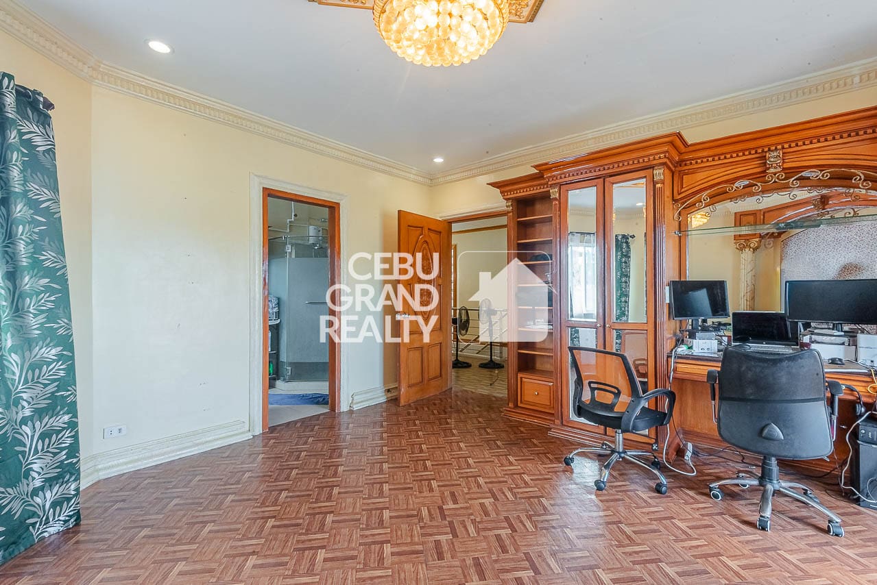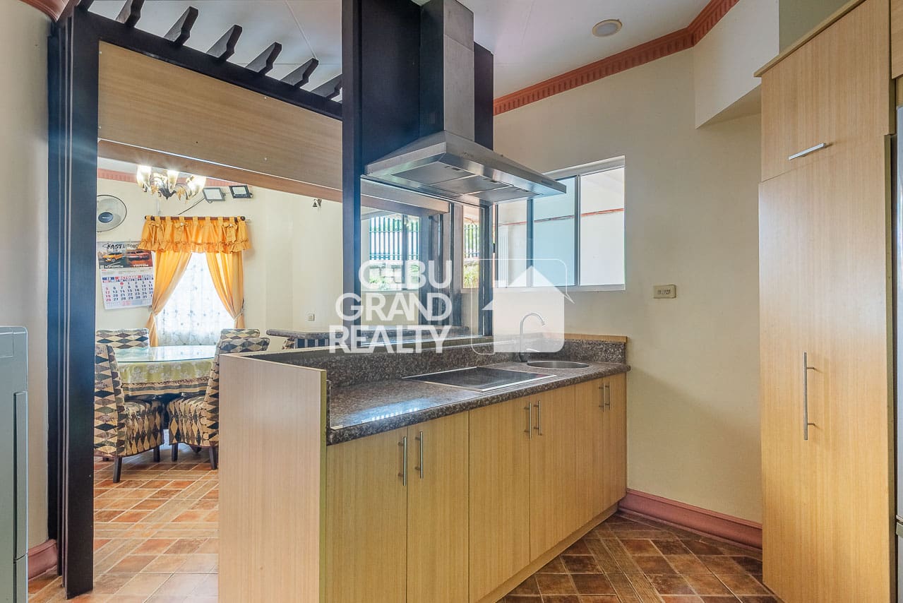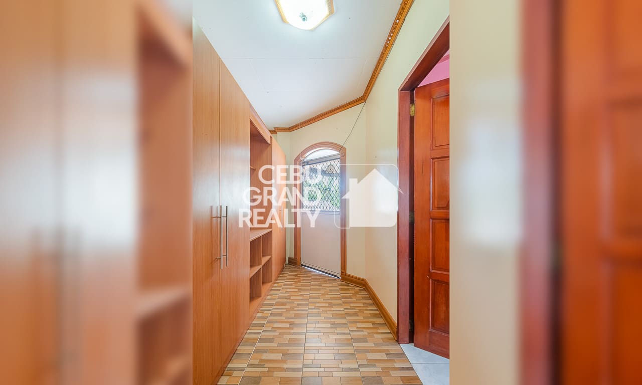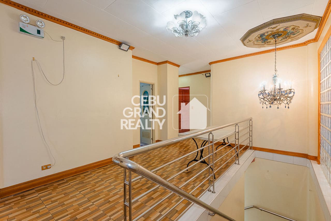 The interior design pays homage to timeless aesthetics and substantial construction. Upon entry, the expansive living area immediately impresses with its intricate tray ceilings, elegant chandeliers, and large bay windows that flood the space with natural light. The layout flows seamlessly into a dedicated dining area, highlighted by a unique breakfast bar with a wooden overhead pergola, creating a warm and inviting atmosphere for daily meals. With a massive floor area of approximately 428 square meters, every corner of this Classic and Spacious Home with Terrace for Sale in Mandaue Cebu feels breathable and unconfined.