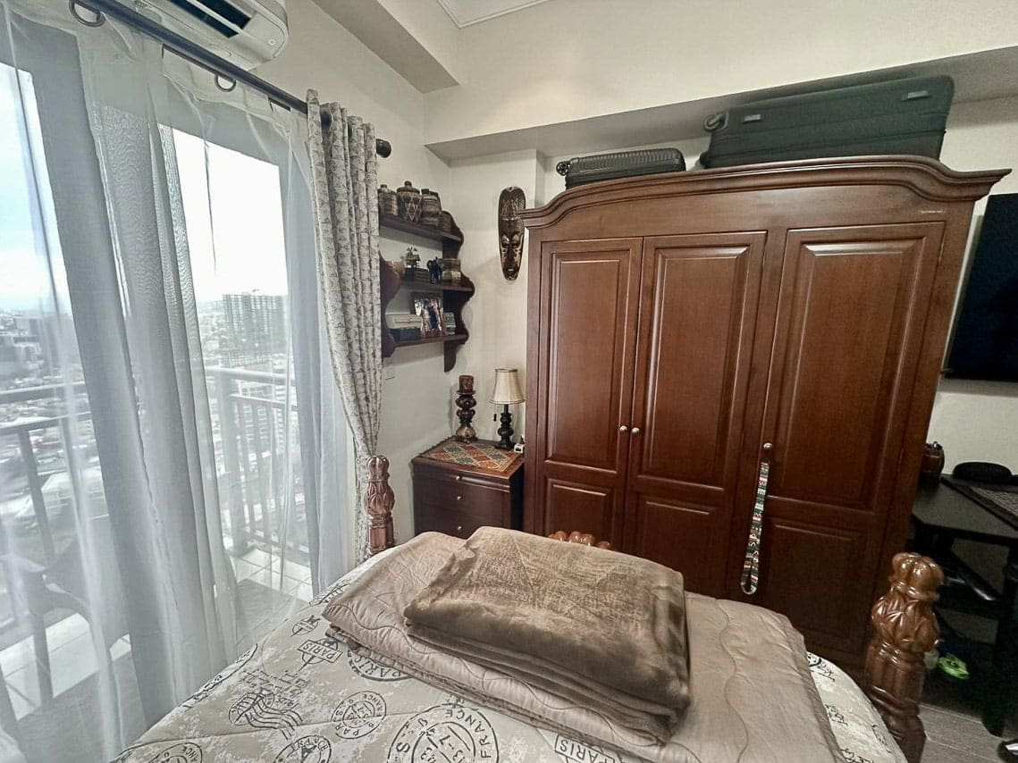 Experience sophisticated urban living in this Classic Studio with City View in Grand Residences. This fully furnished studio unit combines timeless charm and modern functionality, featuring finely crafted wooden furnishings, a leather sofa, and elegant decor. The spacious layout is complemented by floor-to-ceiling windows that open to a private balcony, showcasing breathtaking city views and a serene skyline.