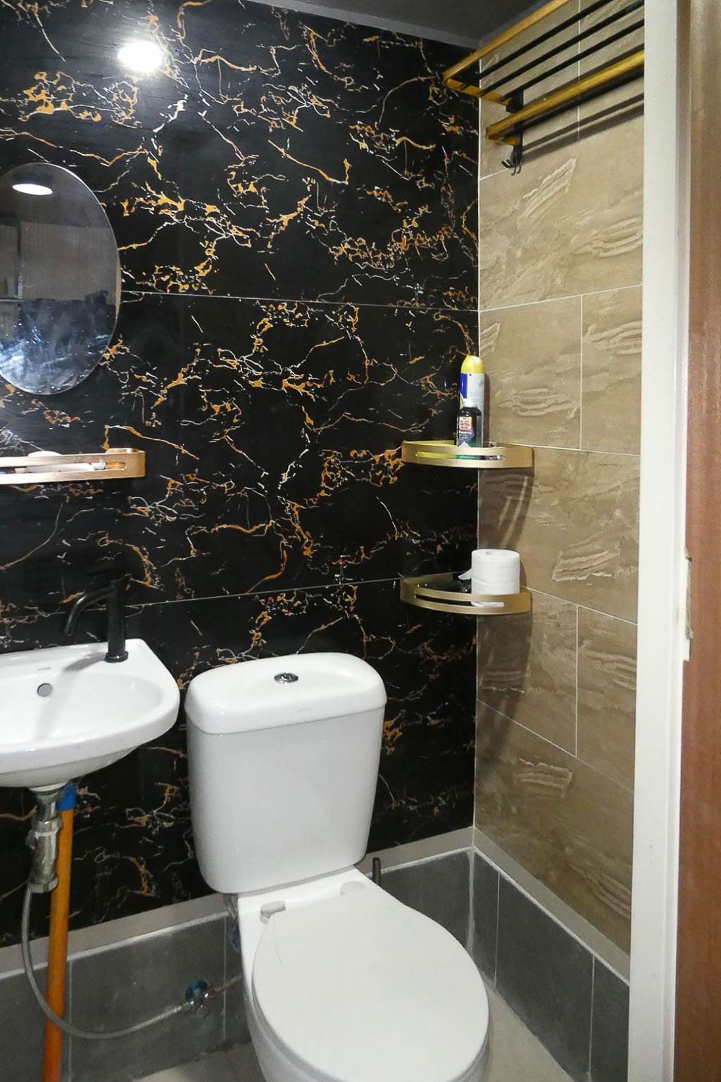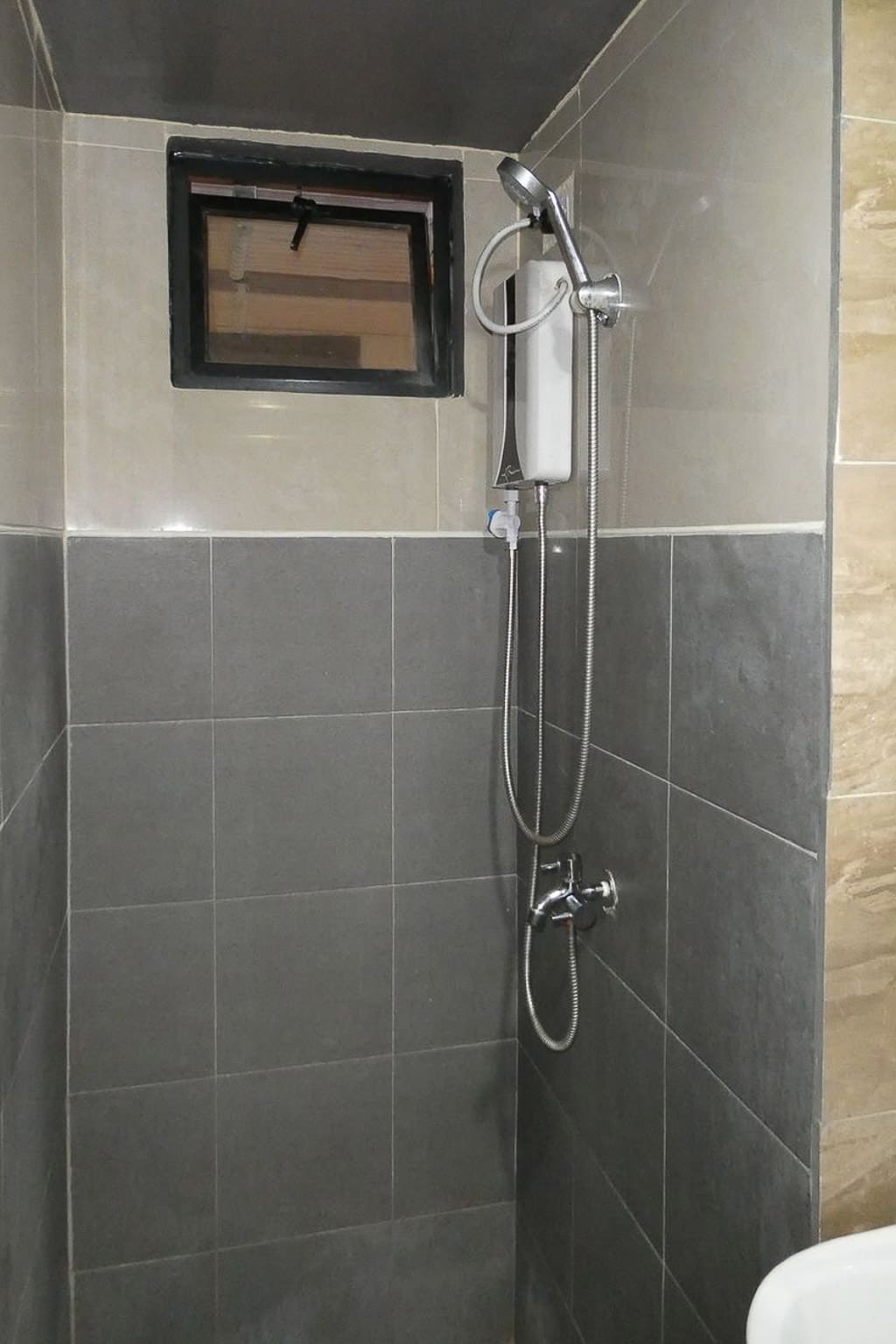 • Fully tiled bathroom with water heater