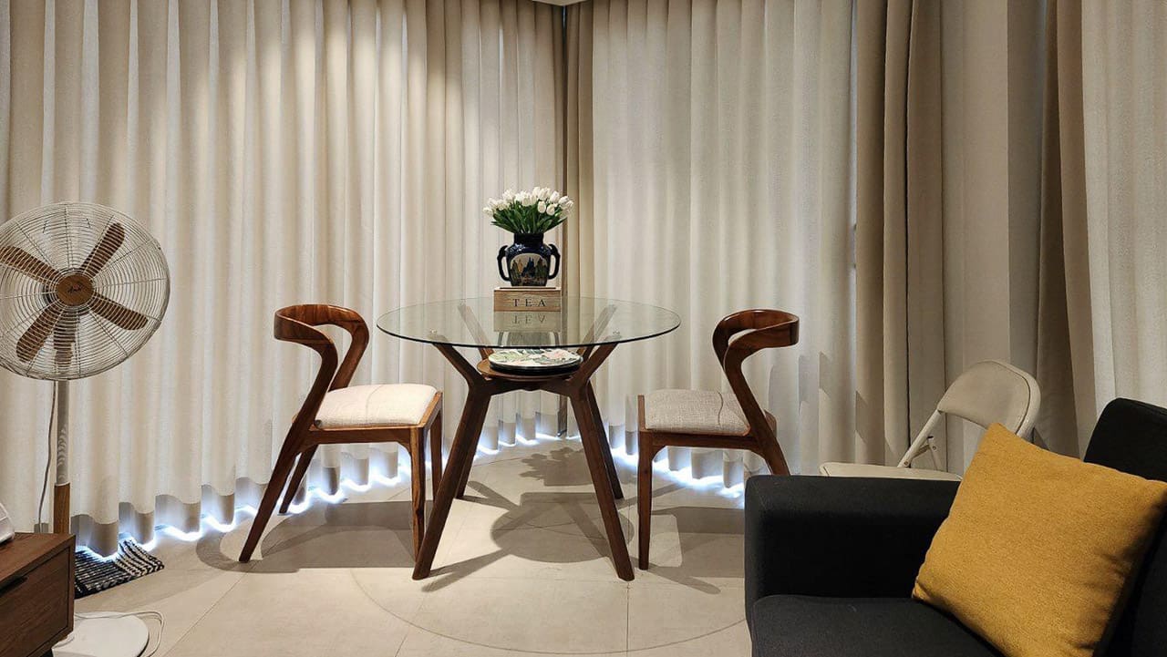 Step into luxury island living in this Designer Condo with Balcony Overlooking Nature & Sea in Cebu, where sophistication meets tranquility. This one-bedroom unit features warm wood accents, modern built-ins, and a spacious open layout that brings together function and style. From the thoughtfully arranged bedroom to the cozy living area and sleek kitchen, every inch is curated with taste and comfort in mind.