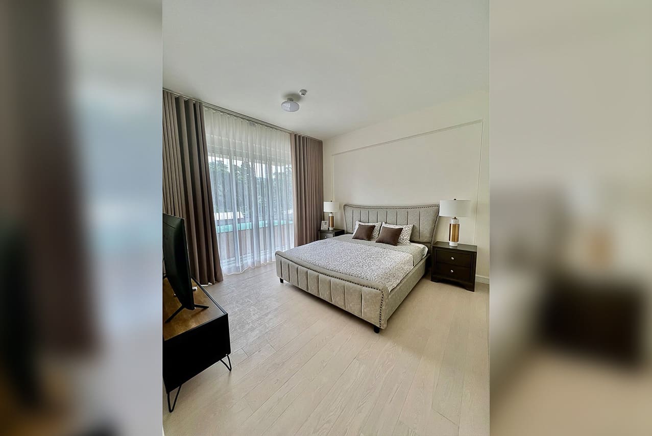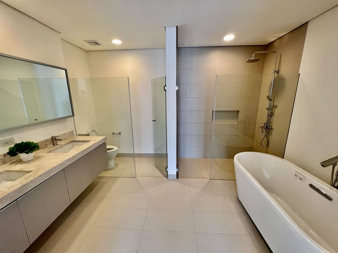 The heart of this home is the spacious open-plan living and dining area, perfect for both quiet evenings and elegant entertaining. Prepare culinary delights in the gourmet kitchen, which features sleek cabinetry and premium appliances. The master suite in this premium Cebu condo for lease is a true retreat, boasting a spa-like ensuite bathroom with a luxurious freestanding bathtub and a separate rain shower. Two additional serene bedrooms offer comfort and privacy. Here, every corner is a testament to quality living.