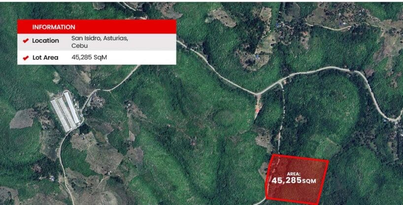 Located in the lush landscapes of the mid-west, this Expansive 4.5 Hectare Agricultural Lot in San Isidro Asturias is a rare investment. It offers a great chance to join Cebu’s agro-industrial sector. The property spans 45,285 square meters. Therefore, it is perfect for large farms or private estates. Furthermore, the Expansive 4.5 Hectare Agricultural Lot in San Isidro Asturias has direct access to a concrete road. This ensures that transport is very easy.
