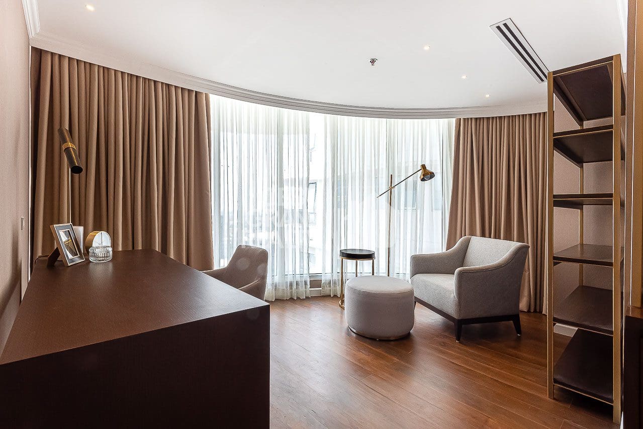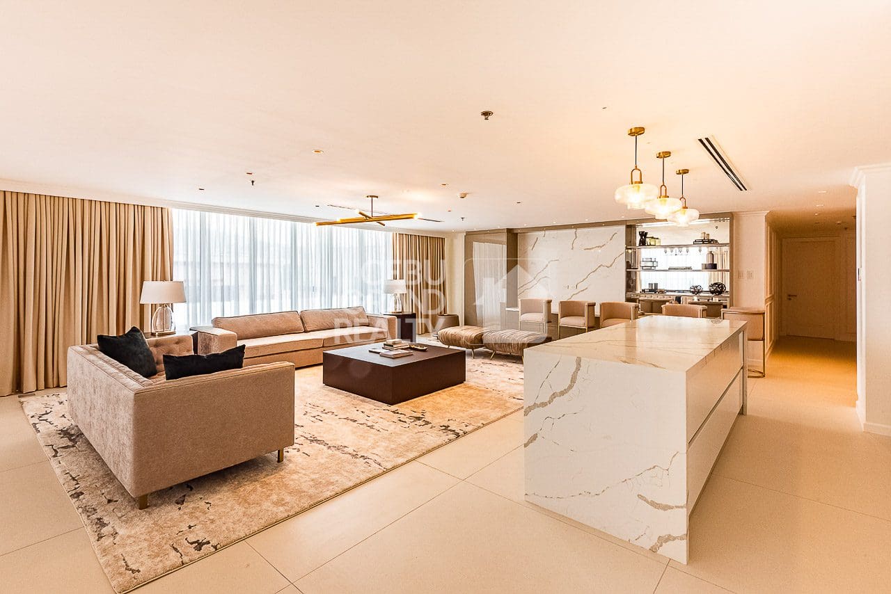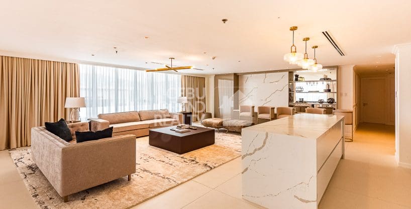 The floor-to-ceiling windows allow natural light to illuminate the living spaces and provide panoramic views of the cityscape and beyond. The contemporary design of this unit is characterized by clean lines, high-end finishes, and premium materials, creating an elegant and sophisticated ambiance.