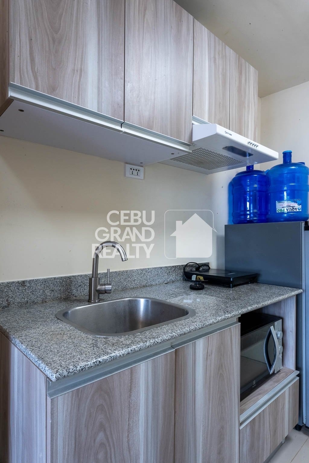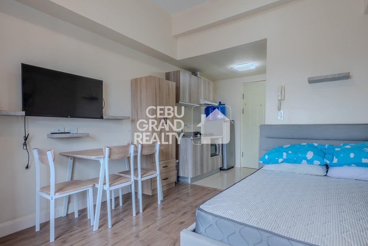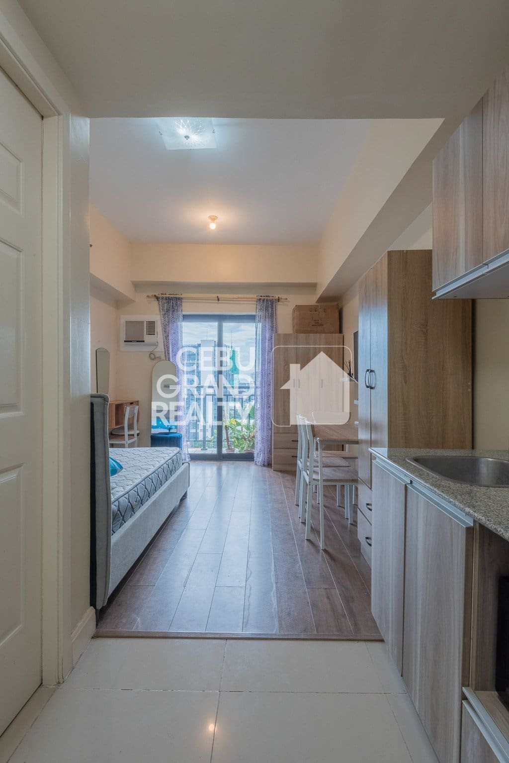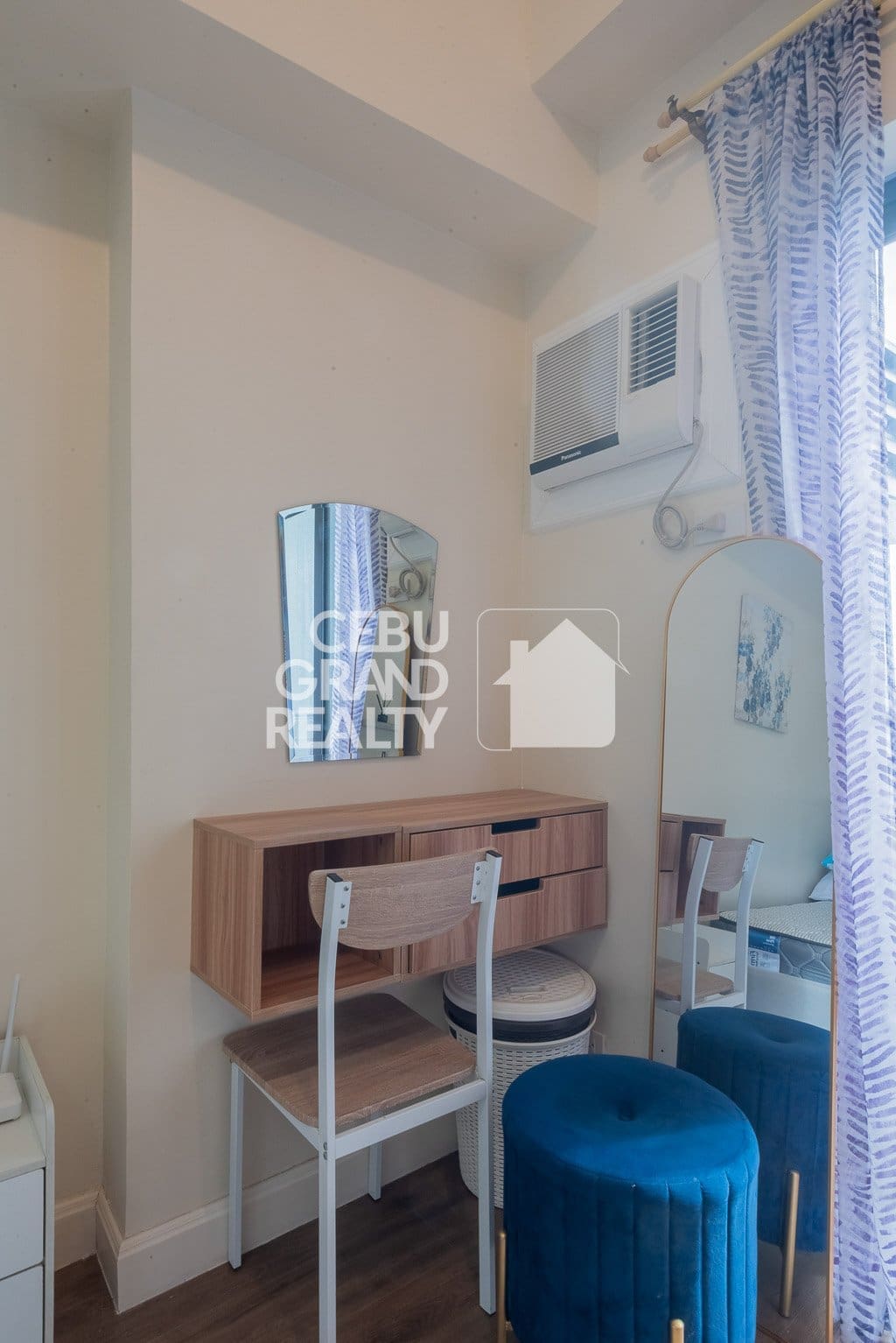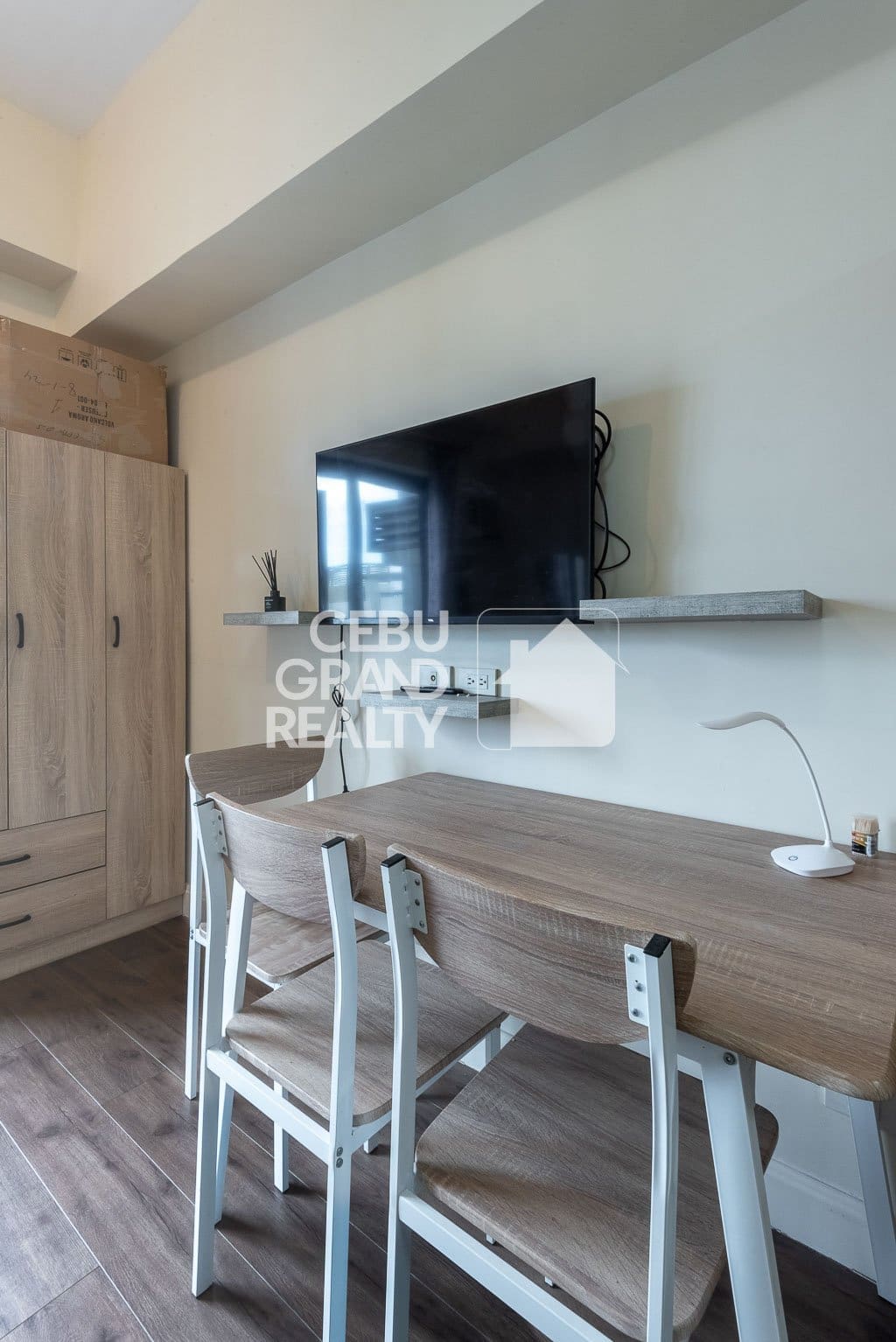 Discover modern city living in this furnished studio with a balcony and city view in Grand Residences, located in the heart of Kasambagan, Cebu. This thoughtfully designed studio combines style and functionality, making it a perfect space for individuals or couples. The unit features a cozy sleeping area with a comfortable bed, a dedicated desk for work or study, and a dining space for two. The well-appointed kitchenette comes with granite countertops, built-in cabinets, and essential appliances to make meal preparation a breeze.