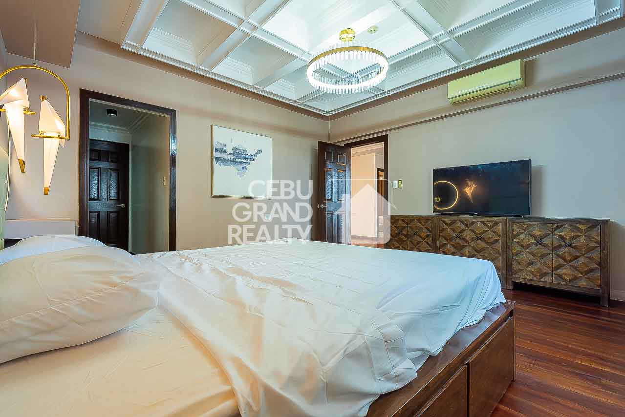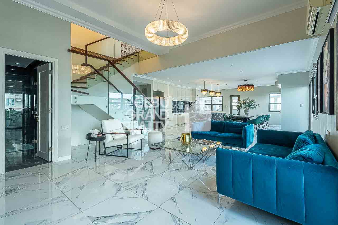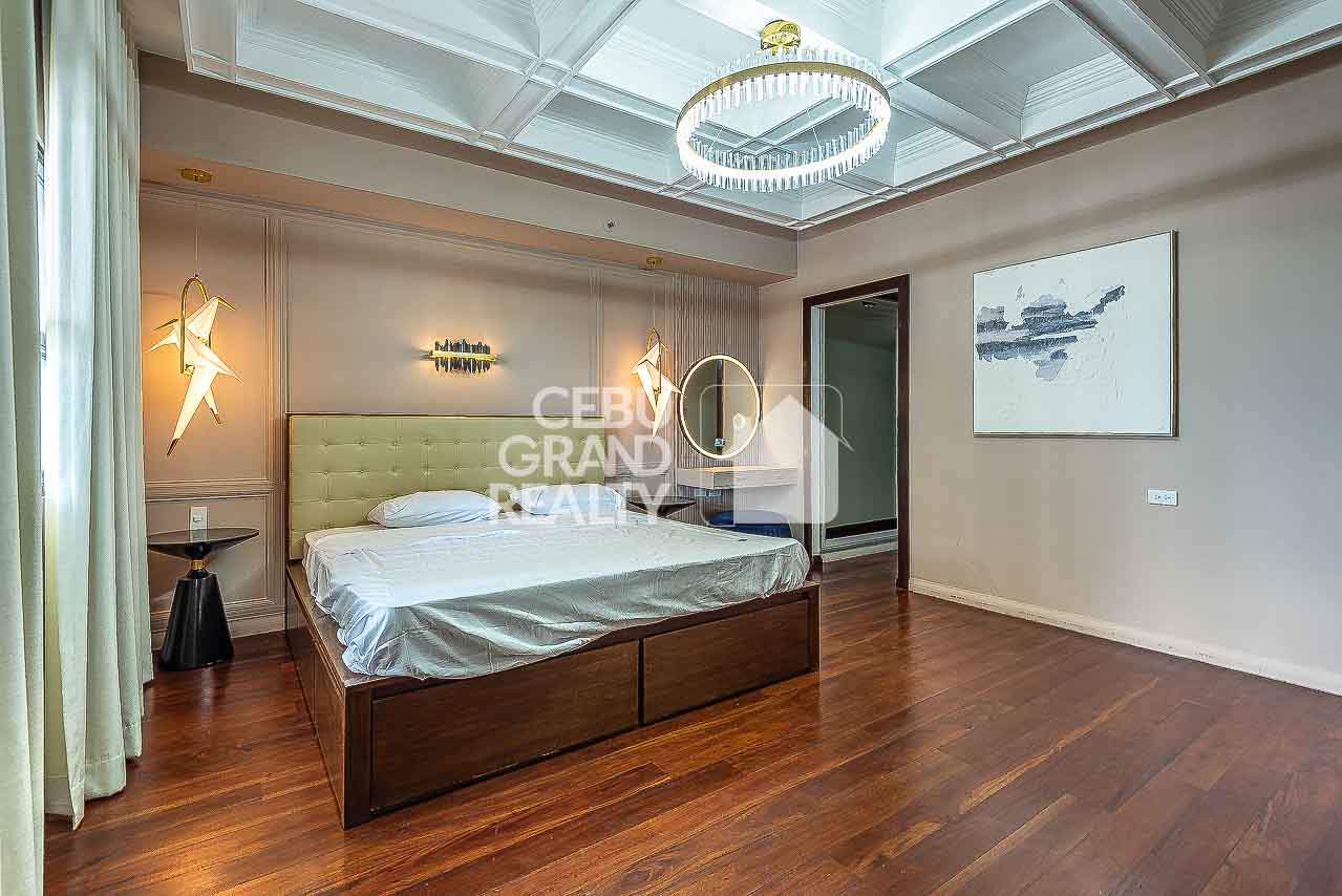 Moving upstairs, the upper level also continues the theme of luxury with big bedrooms that have rich hardwood flooring. Moreover, the master suite is a true getaway, complete with an elegant patterned ceiling and a classy feel. As you can see, every detail, from the soft velvet furniture to the eye-catching marble accent walls, has been carefully chosen for your penthouse with its scenic balcony views. Therefore, don't miss the chance to make this Luxurious and Stunning Penthouse with a Scenic Balcony your new home in Cebu.