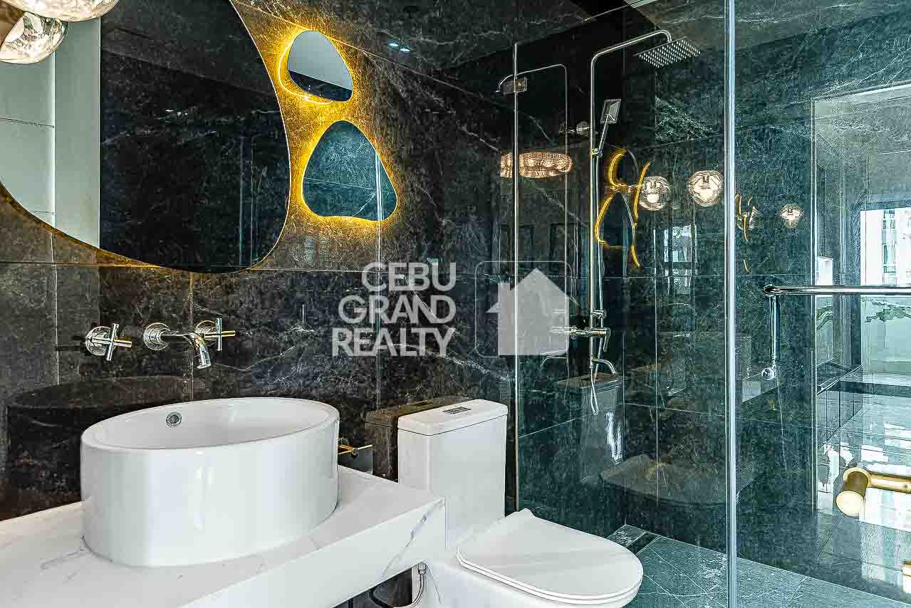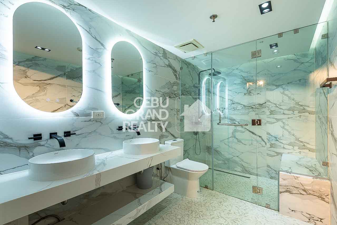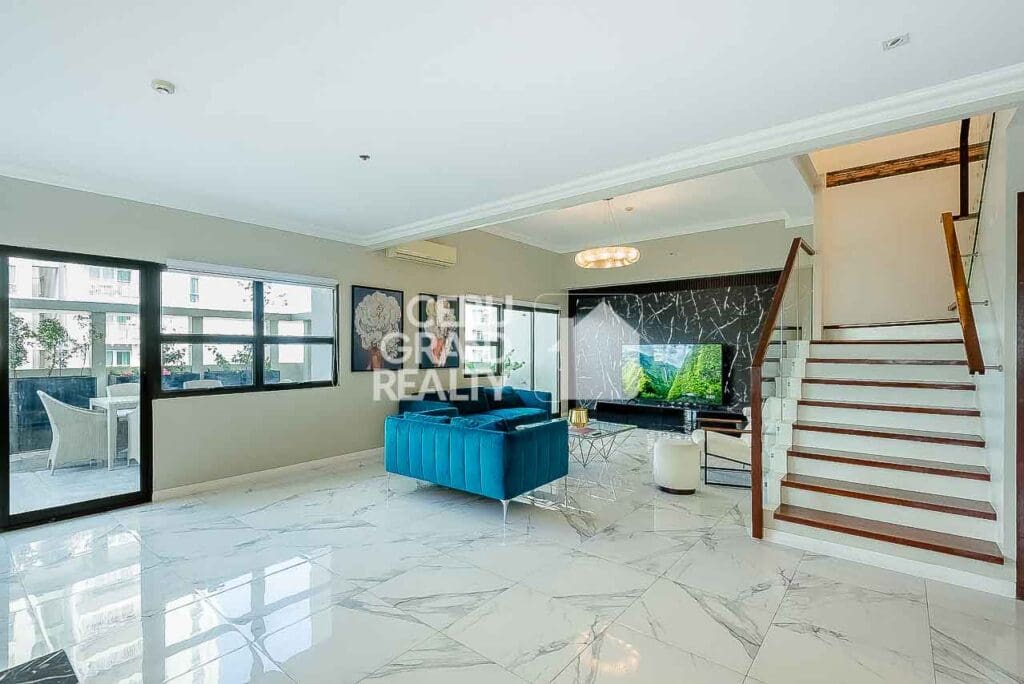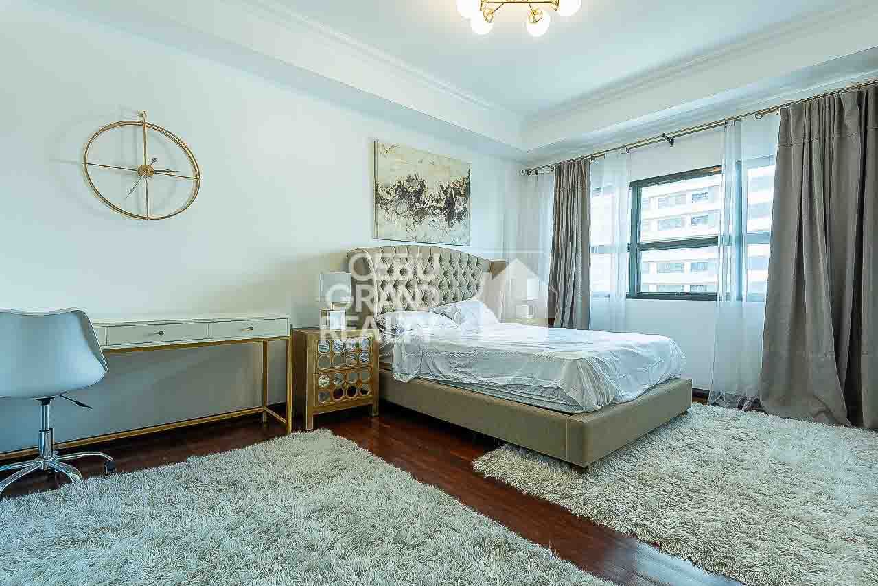 Moving upstairs, the upper level also continues the theme of luxury with big bedrooms that have rich hardwood flooring. Moreover, the master suite is a true getaway, complete with an elegant patterned ceiling and a classy feel. As you can see, every detail, from the soft velvet furniture to the eye-catching marble accent walls, has been carefully chosen for your penthouse with its scenic balcony views. Therefore, don't miss the chance to make this Luxurious and Stunning Penthouse with a Scenic Balcony your new home in Cebu.