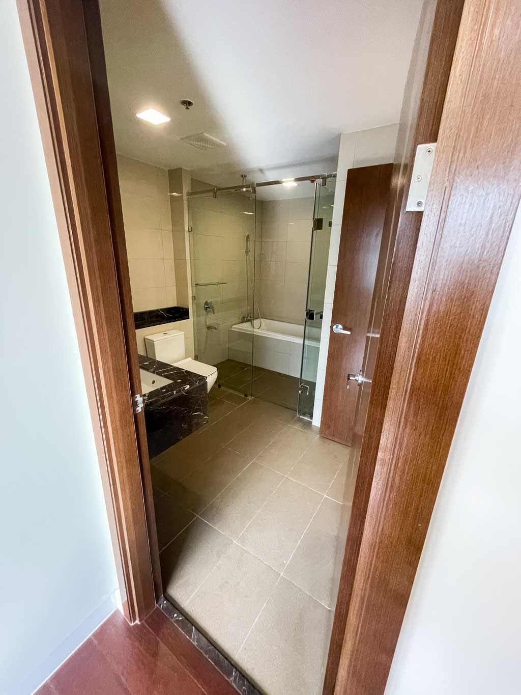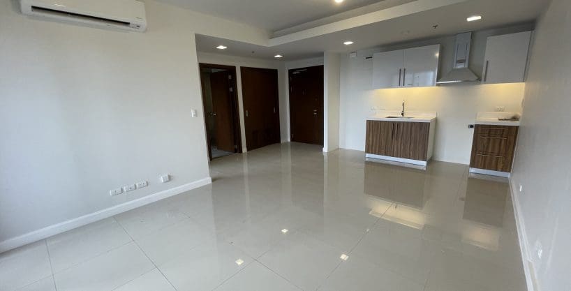This modern 1 bedroom condo in The Alcoves offers sleek design and stunning panoramic city views. The bright and open living room features floor-to-ceiling windows, while the bedroom boasts rich wood-style flooring and built-in storage. The marble bathroom, with its glass-enclosed shower and bathtub, adds a touch of luxury, and the spacious balcony is perfect for relaxing. Located in Cebu Business Park, this unit is the ideal combination of affordability and urban convenience.