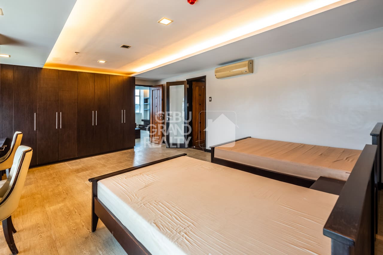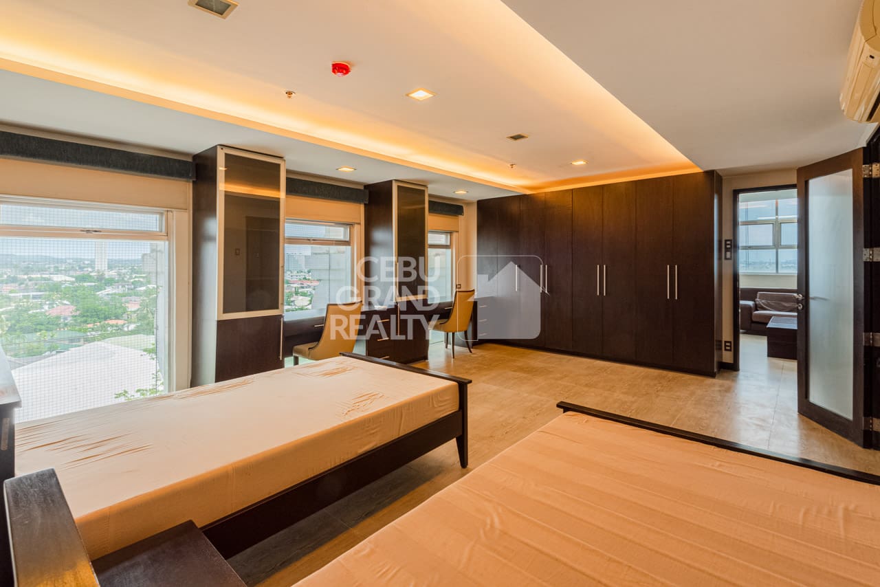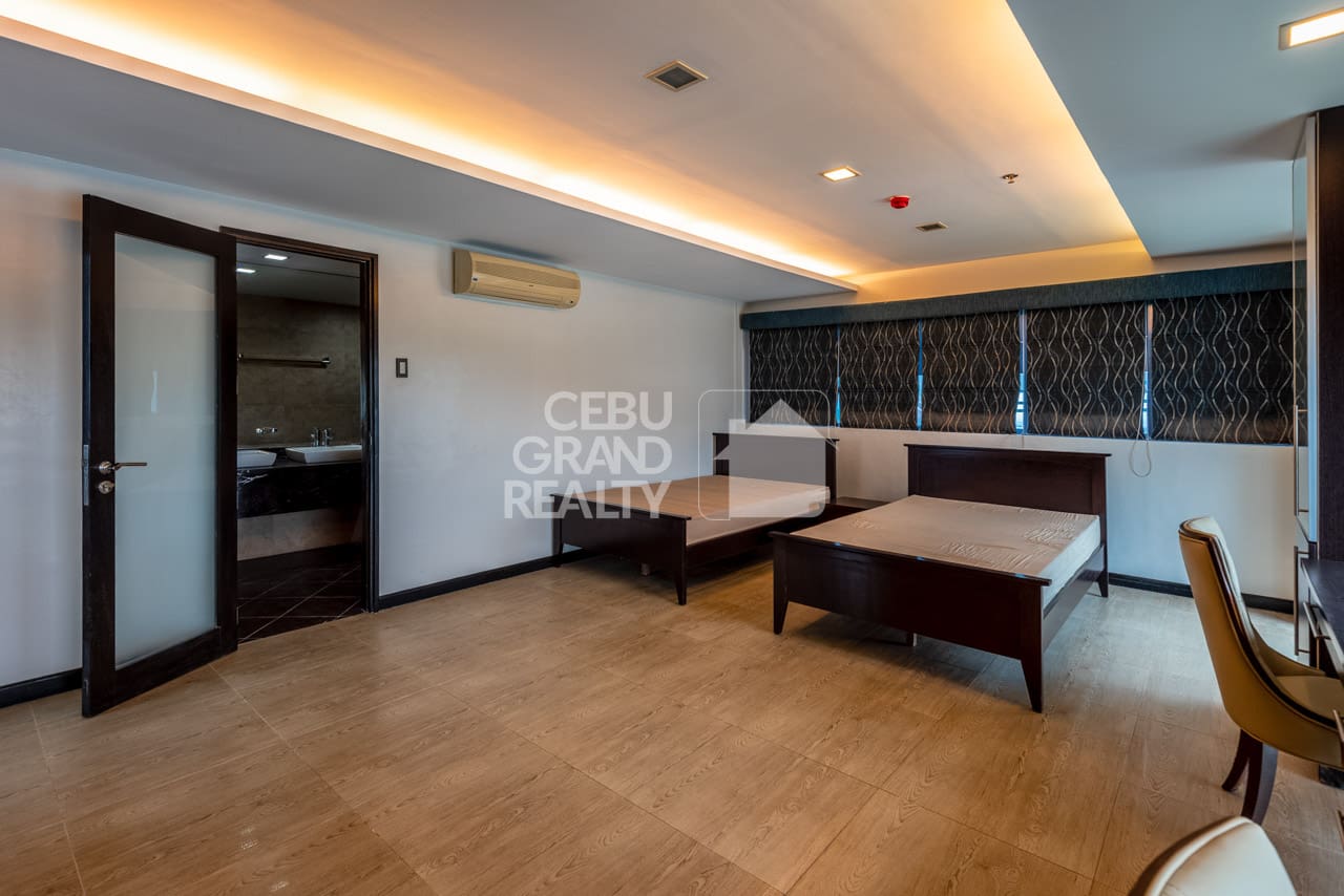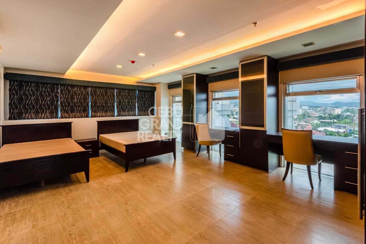 The home's bi-level design smartly separates the main living areas from the quiet bedrooms. To explain, the upper level has very large bedrooms. For example, one room is big enough for multiple beds and two full, built-in desks. Consequently, this makes it a perfect setup for a home office or study space. Furthermore, every detail, from the large storage to the quality materials, has been carefully planned. All in all, with its great location and stylish insides, this Luxurious Modern Penthouse with Stunning Cebu Views is truly a top rental choice in Cebu City.