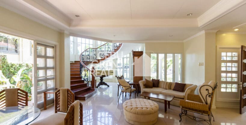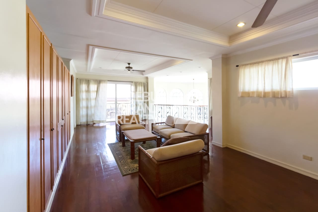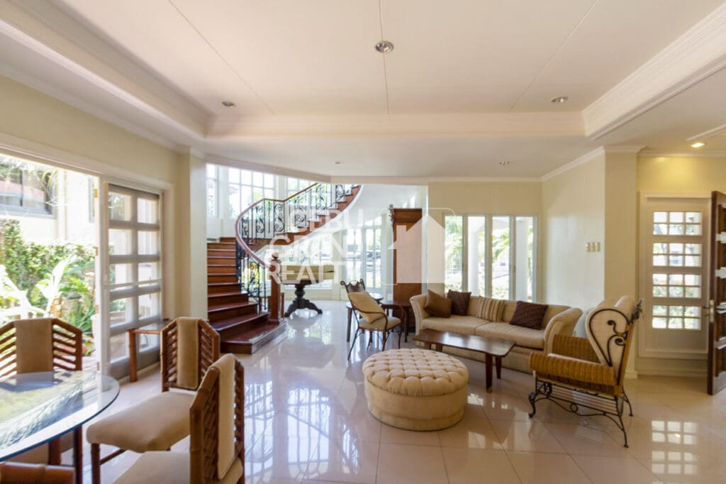 Outdoors, this Luxury Family Home with Private Pool in Cebu City provides a refreshing retreat with its private swimming pool and lounge area surrounded by lush greenery. The property also offers secure parking for up to six cars and comes fully furnished for move-in convenience.