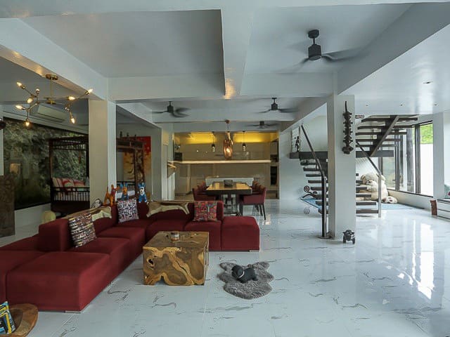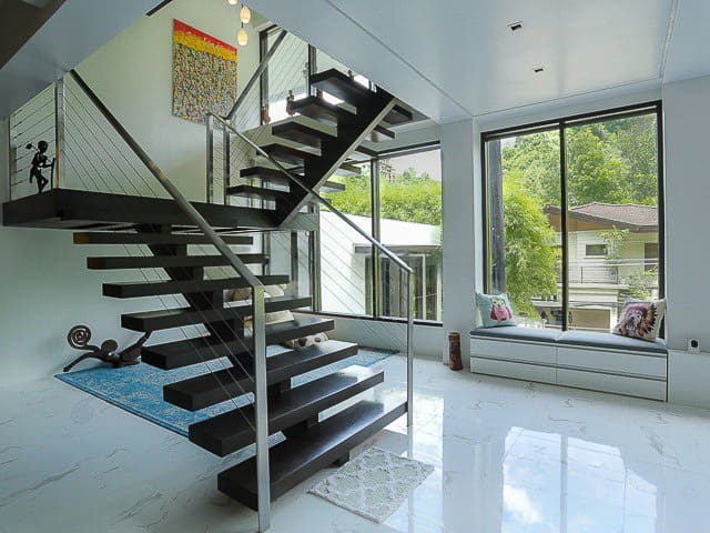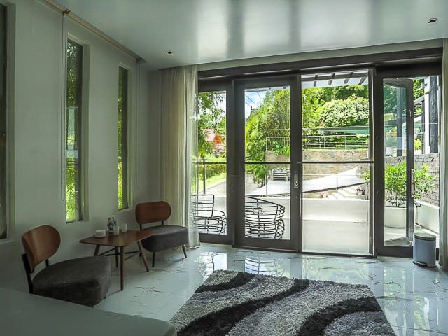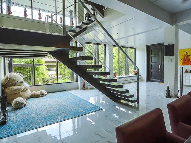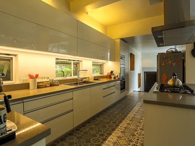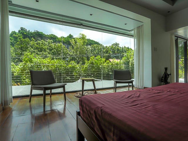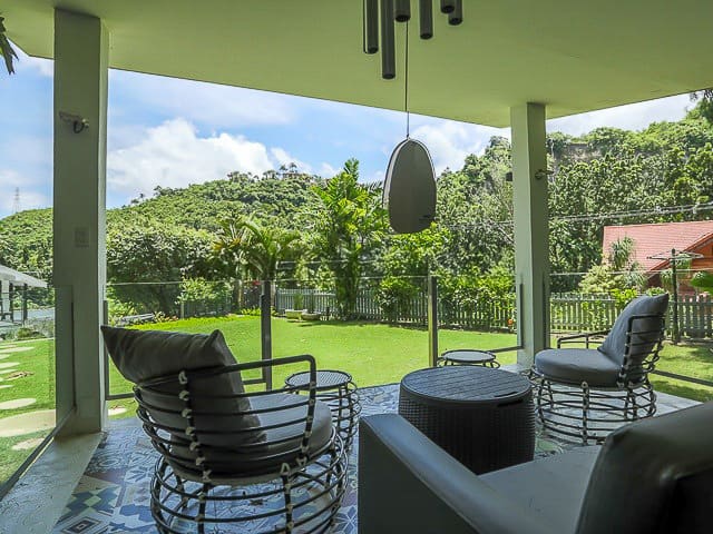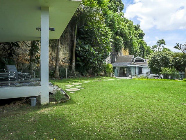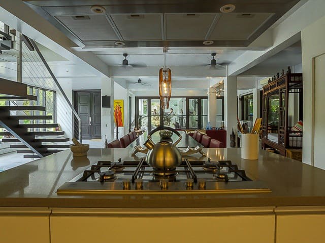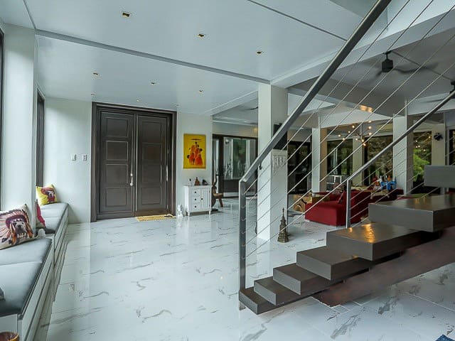 In addition to these views, the kitchen looks very sleek with its white cabinets and bright lighting. Moreover, the property features a calm pool that looks out over the green valley. Because of its unique location, this Luxury Hillside Residence with Panoramic Views in Maria Luisa has a special cliffside look where the natural rock becomes part of the home. As a result, you can own a piece of the best area in Cebu with this one-of-a-kind Luxury Hillside Residence with Panoramic Views in Maria Luisa. Similarly, the bedrooms are designed to be peaceful retreats. On the other hand, the living areas are perfect for hosting guests. Along with these interior spaces, the outdoor decks provide the perfect spot for relaxation. Finally, to conclude, this estate offers a lifestyle that is truly hard to find anywhere else.