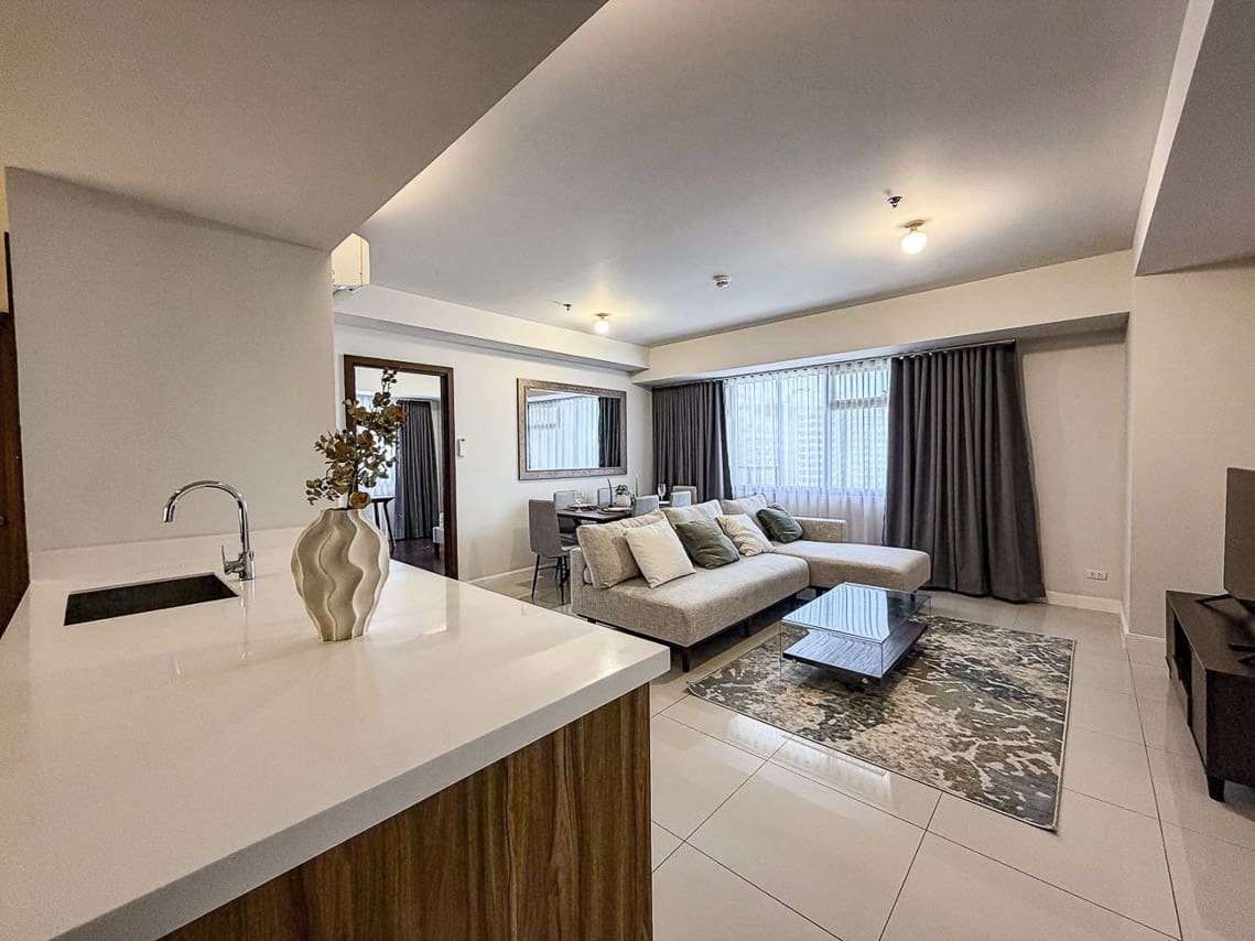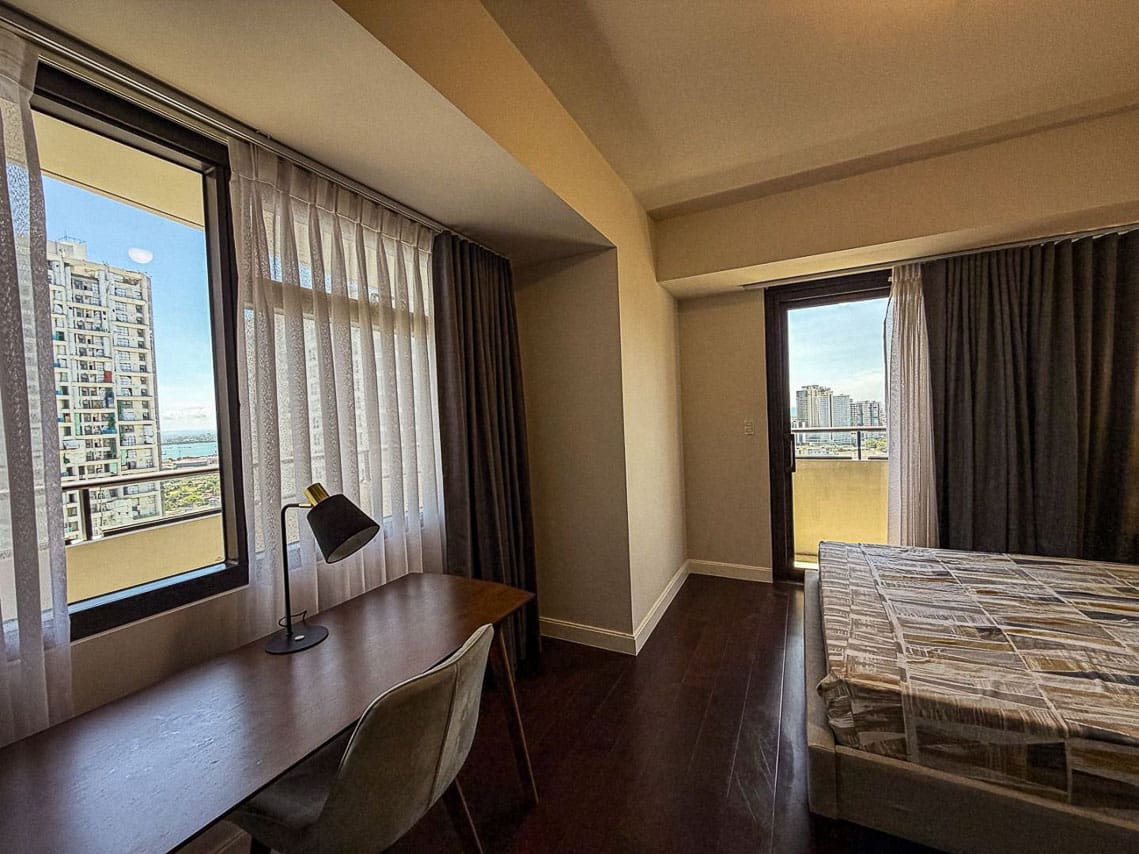 Inside, this Modern High Floor Condo Zen Suite at The Alcoves features a clean and simple design. For example, the kitchen has a sleek breakfast bar and nice wooden cabinets. Additionally, the bedroom is very peaceful. Because it has dark wood floors and a desk, the space is both pretty and useful. Moreover, you can walk straight from the bedroom to the balcony to enjoy the fresh air. As a result, this Modern High Floor Condo Zen Suite at The Alcoves truly represents the luxury of Ayala Land Premier. Lastly, the direct mall access adds a level of convenience that is hard to find elsewhere.