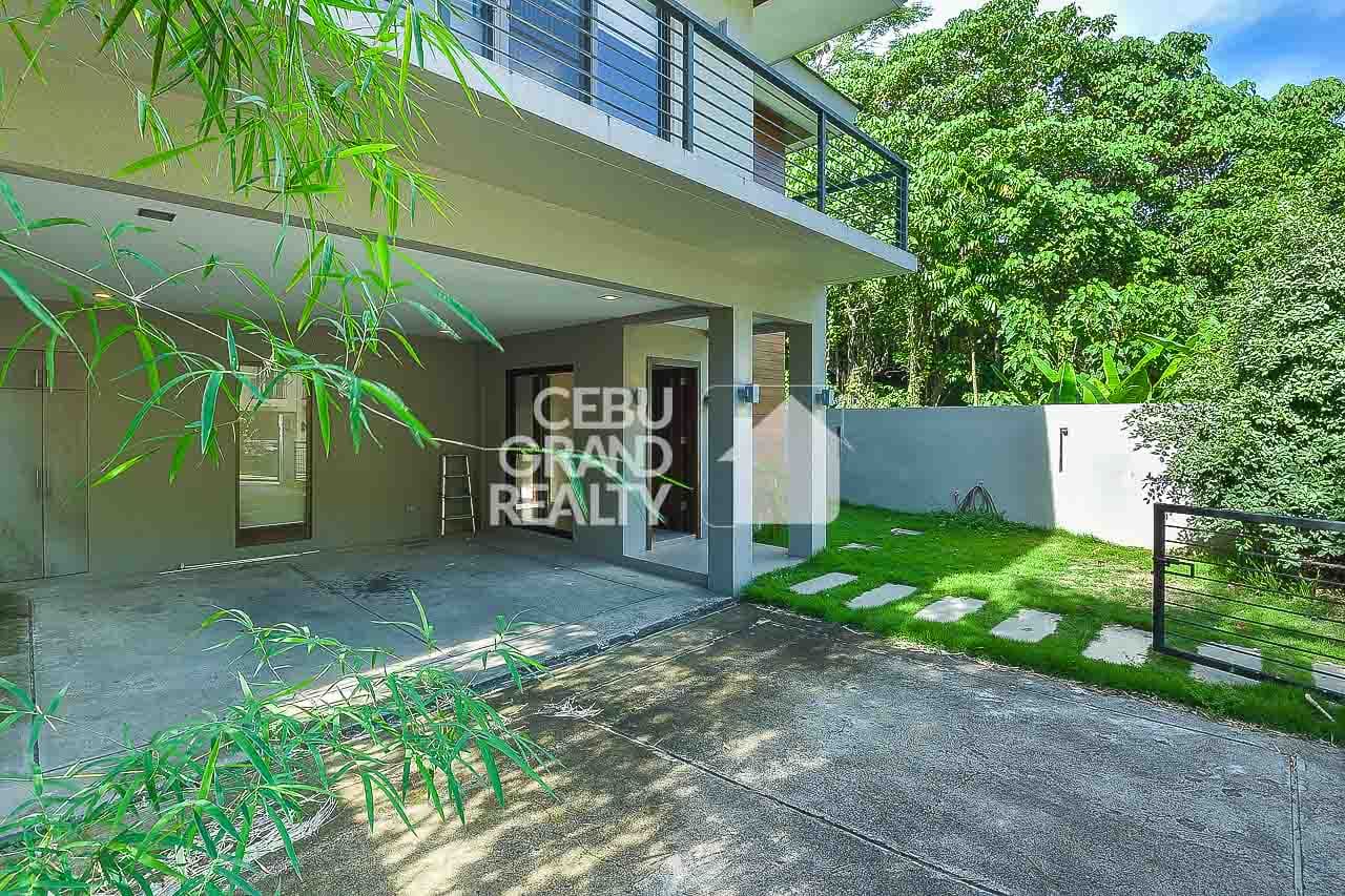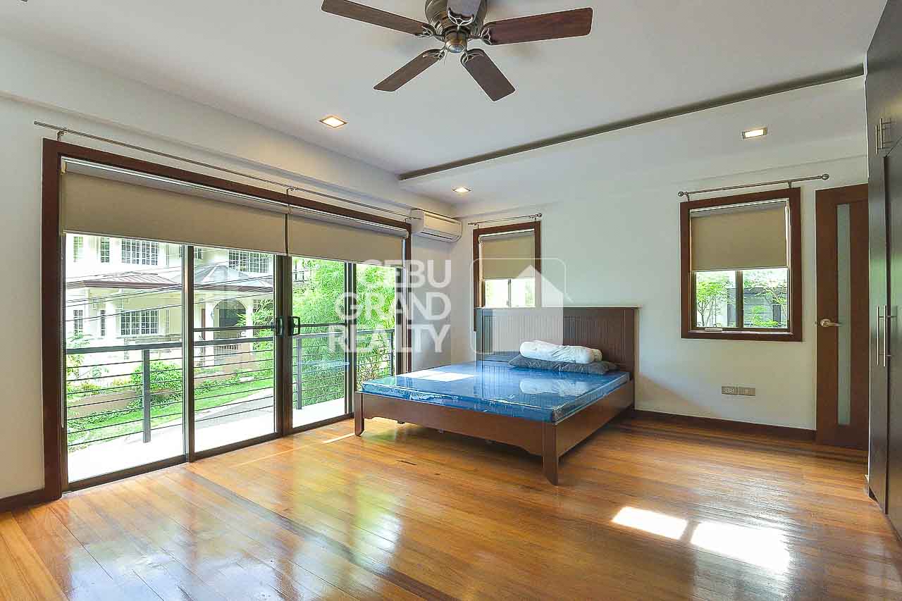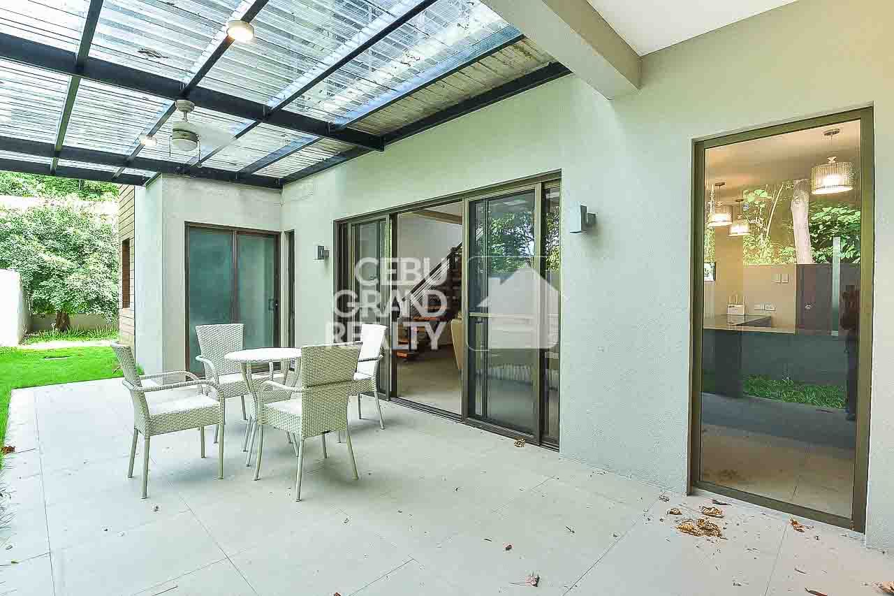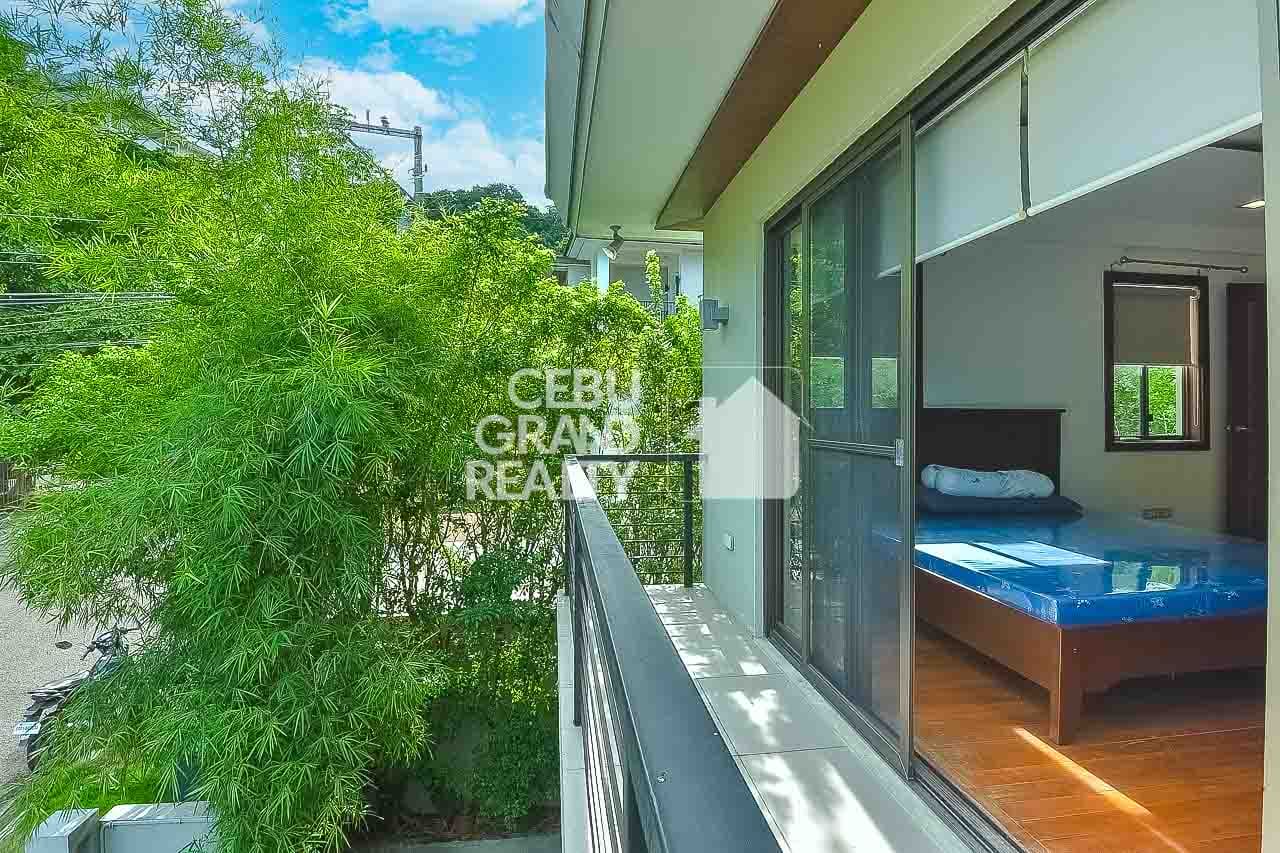 Upstairs, the master suite, with its wooden floors, ceiling fan, and large windows, offers direct access to a private balcony. The ensuite bathroom features modern fixtures and a glass-enclosed shower. Additional bedrooms are equally inviting, each with large windows and built-in storage. The outdoor patio is perfect for entertaining, featuring a covered area with a transparent roof and a white outdoor dining set. The balcony provides a serene spot to enjoy morning coffee or unwind with a book, creating a serene modern oasis.