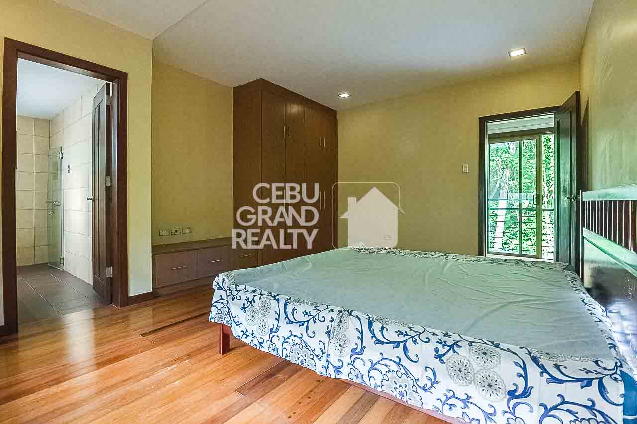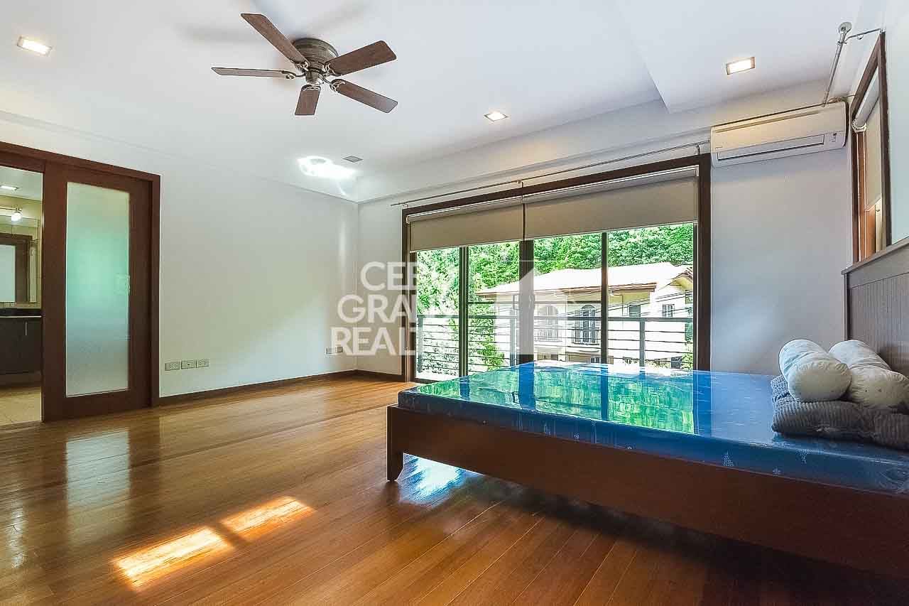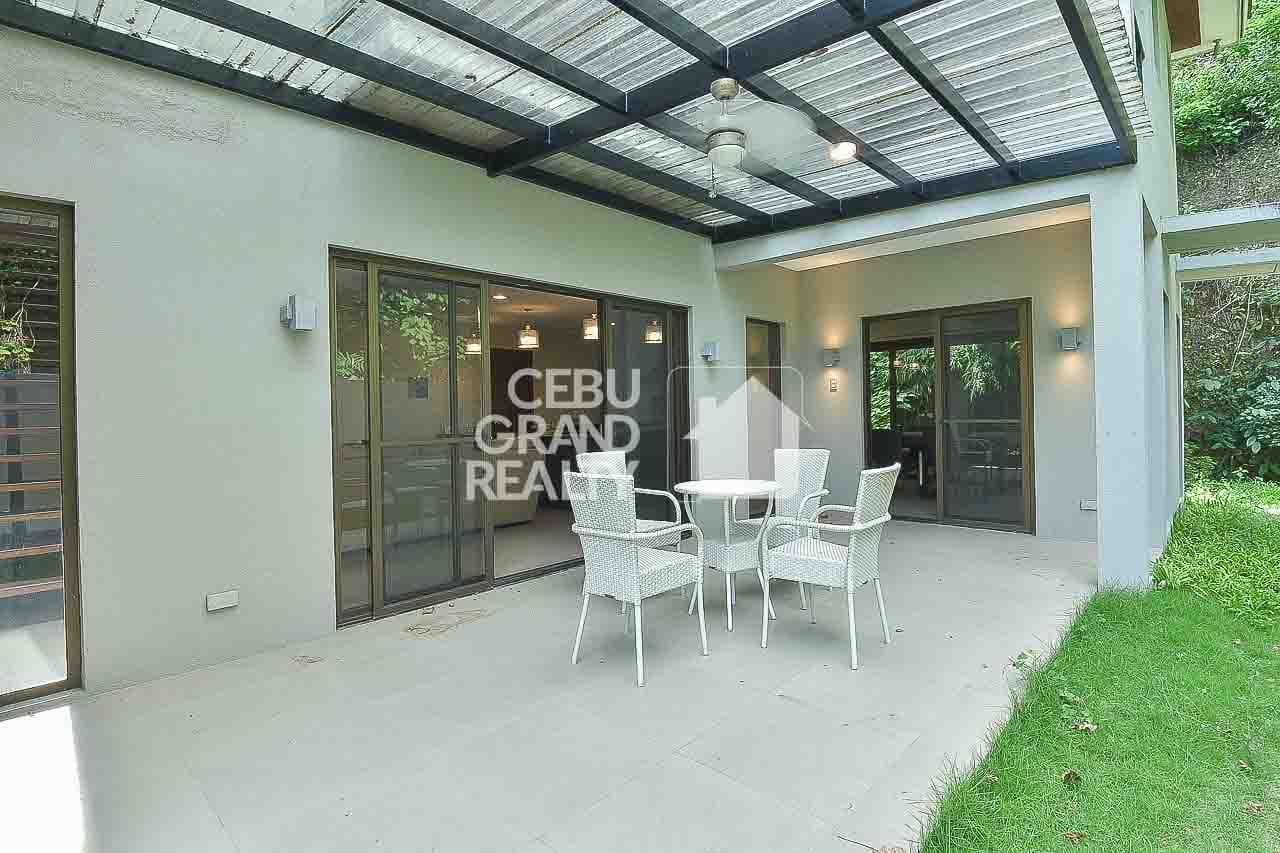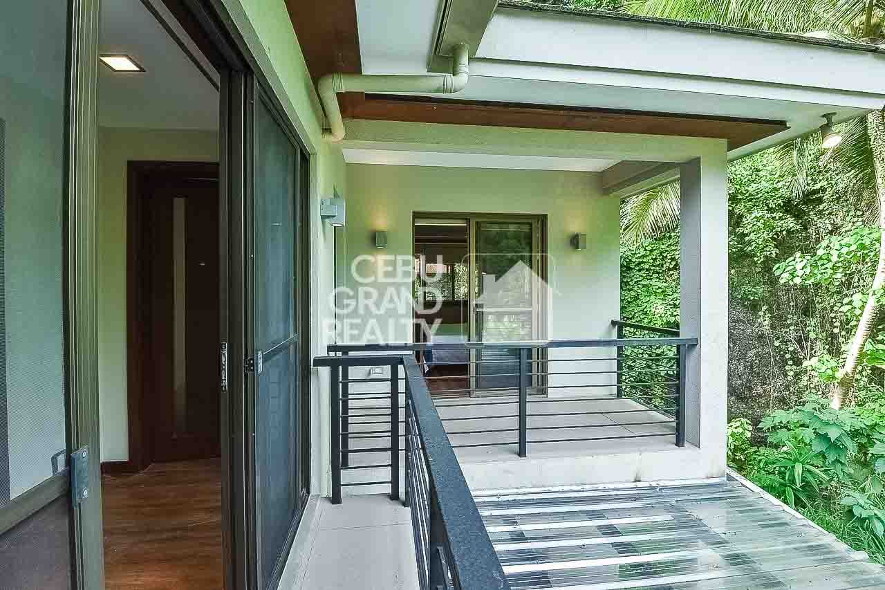 Upstairs, the master suite, with its wooden floors, ceiling fan, and large windows, offers direct access to a private balcony. The ensuite bathroom features modern fixtures and a glass-enclosed shower. Additional bedrooms are equally inviting, each with large windows and built-in storage. The outdoor patio is perfect for entertaining, featuring a covered area with a transparent roof and a white outdoor dining set. The balcony provides a serene spot to enjoy morning coffee or unwind with a book, creating a serene modern oasis.