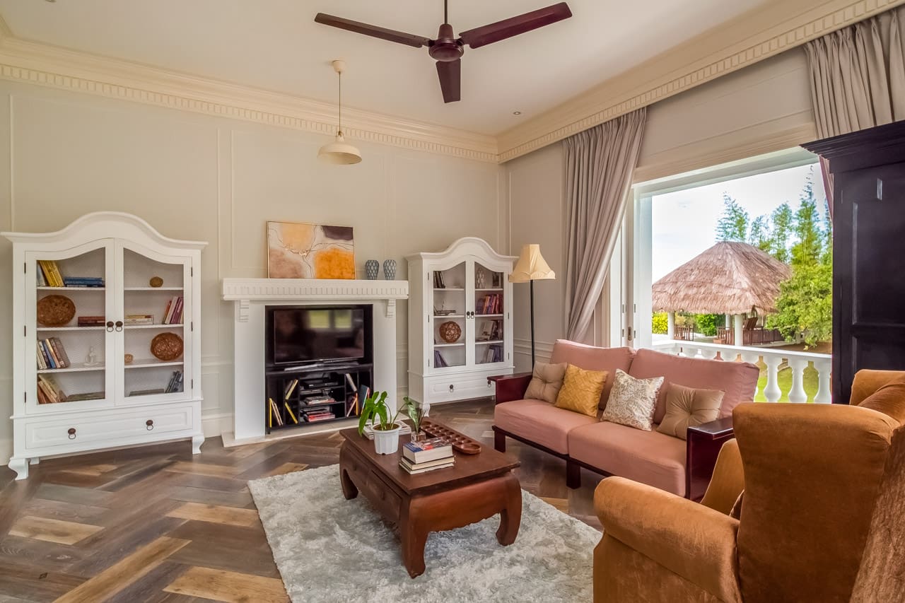 Step through the impressive entrance into a world of abundant light and space. The sun-drenched living areas feature soaring ceilings and expansive windows that perfectly frame the stunning natural surroundings. This seamless blend of the indoors with the vibrant landscape outside confirms that this is truly Ocean's Embrace. Every detail is crafted for sophisticated comfort, from the elegant flow of the common areas to the inviting warmth of its cozy corners. The heart of the estate is its magnificent swimming pool, a turquoise oasis perfect for leisurely afternoons or elegant evening gatherings, making this the ultimate luxury house for sale in Panglao, Bohol for entertaining.