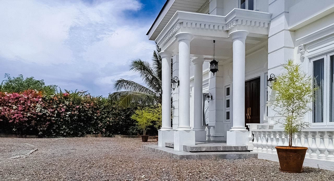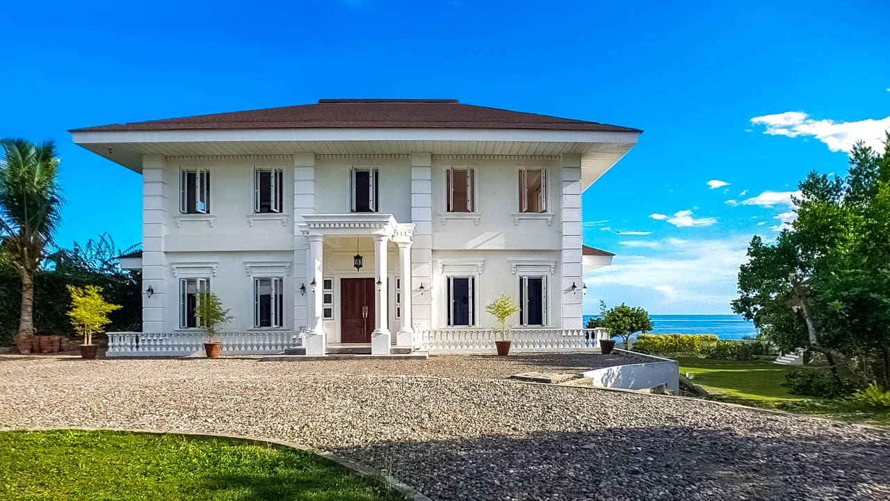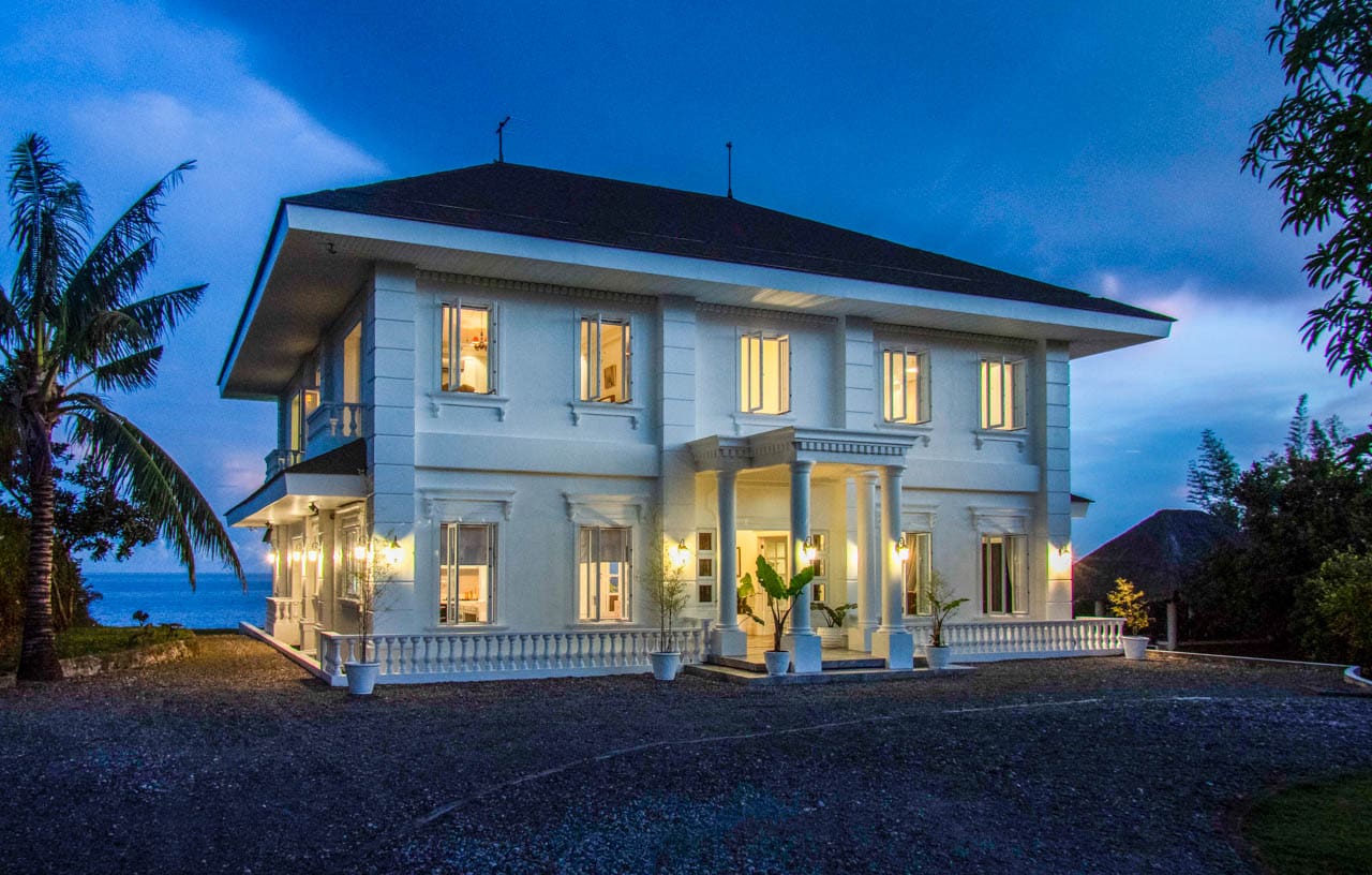 Welcome to Ocean's Embrace: A Breathtaking Home with Luxury Views. Nestled in a secluded tropical paradise, this luxury house for sale in Panglao, Bohol is a majestic manor and a masterpiece of classic architecture and serene coastal living. From the moment you pass through its gates, the property captivates with a stately white facade, grand columns, and lush, manicured gardens that create a profound sense of privacy and exclusivity. This is not just a residence; it is a sanctuary meticulously designed for those who seek unparalleled beauty by the sea.