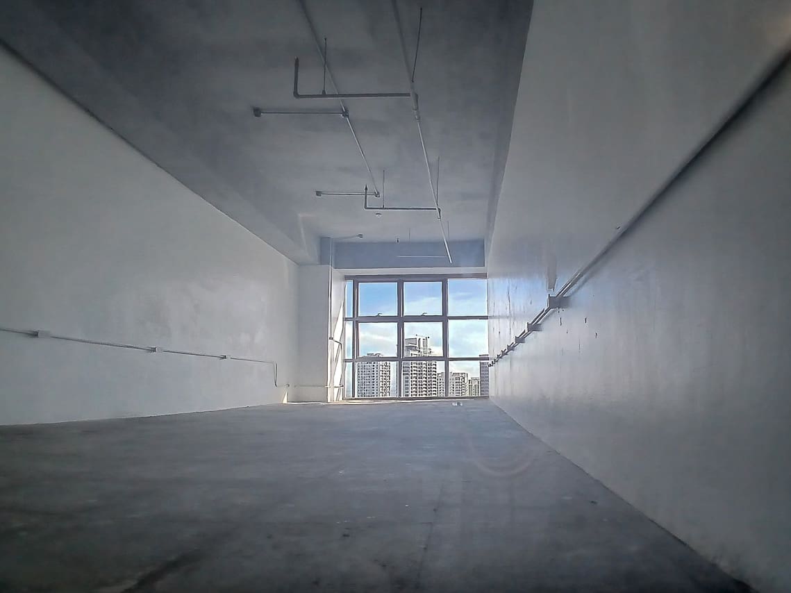 Upgrade your workspace with this 52 sqm open-layout office for lease in Latitude Corporate Center, Cebu Business Park. Designed for flexibility and efficiency, this high-ceiling unit provides a spacious work environment with floor-to-ceiling windows, offering ample natural light and stunning city views. The modern-industrial design, featuring white-painted walls, exposed ceiling pipes, and concrete flooring, allows easy customization to suit your business needs. If you're looking for an open-layout office space for lease in Cebu Business Park, this unit is an excellent choice for businesses that value a well-lit, adaptable workspace in a prime location.