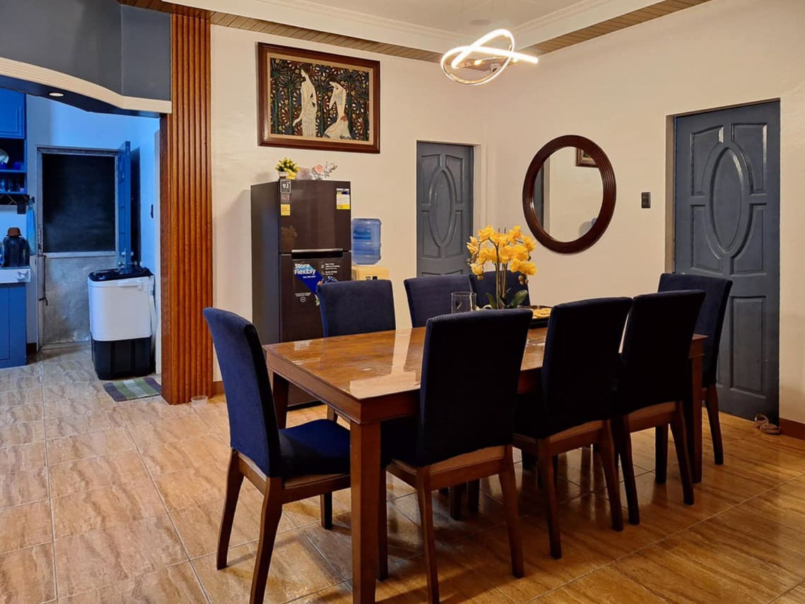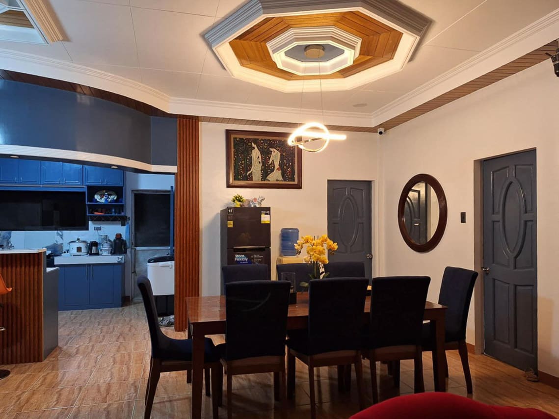 Whether you're relaxing in the lounge, hosting dinner, or enjoying the view from the front yard, you’ll feel the essence of Serene Charm Elegant Blue Bungalow on a Spacious Lot in every corner of this home. The property also includes a gated entrance, ample parking space, and room for future expansions or gardening.