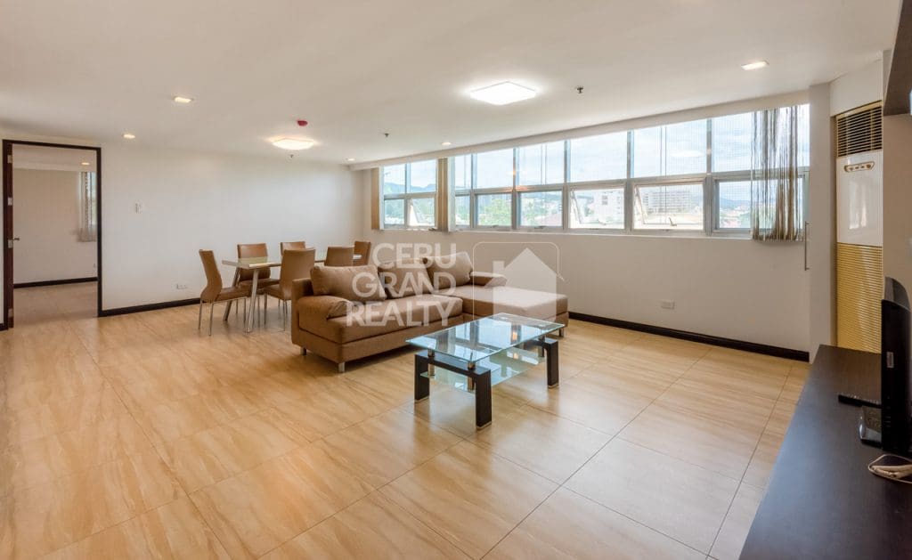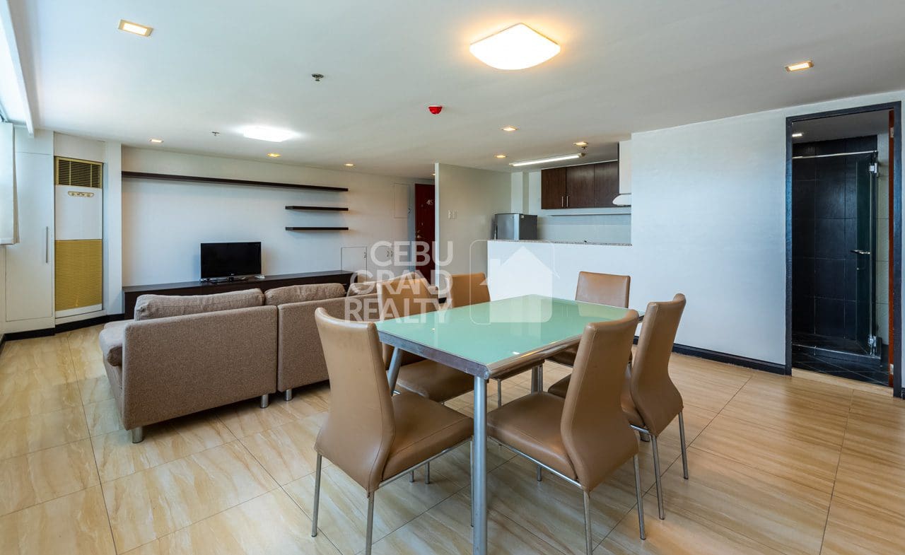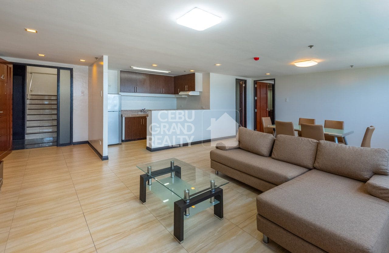 Welcome to your dream home in Cebu! This condominium boasts a spacious living room with natural light streaming through large windows and an open layout connecting the kitchen and living areas, perfect for entertaining. The kitchen features dark wood cabinets, granite countertops, and modern appliances, ensuring a chef's delight.