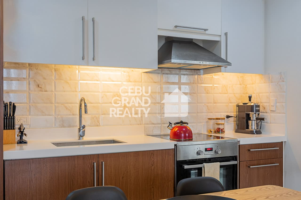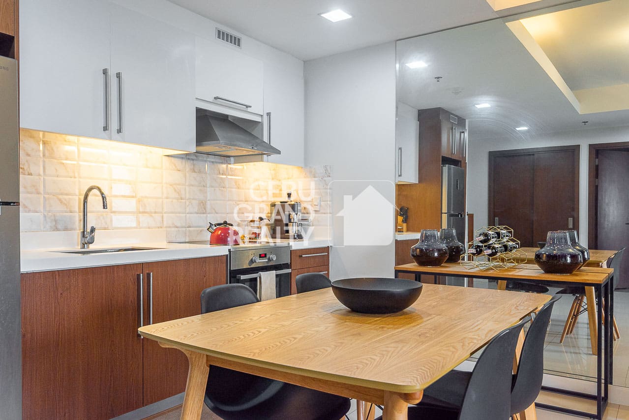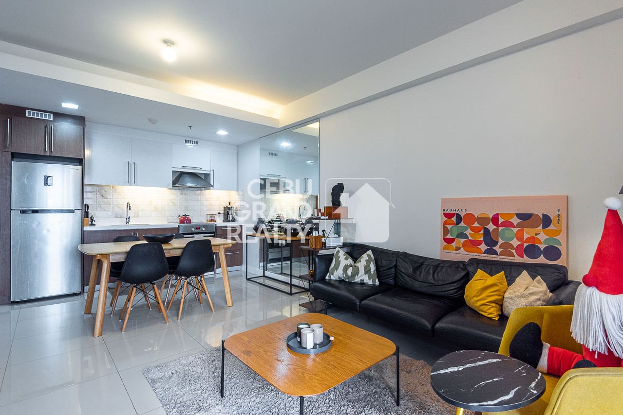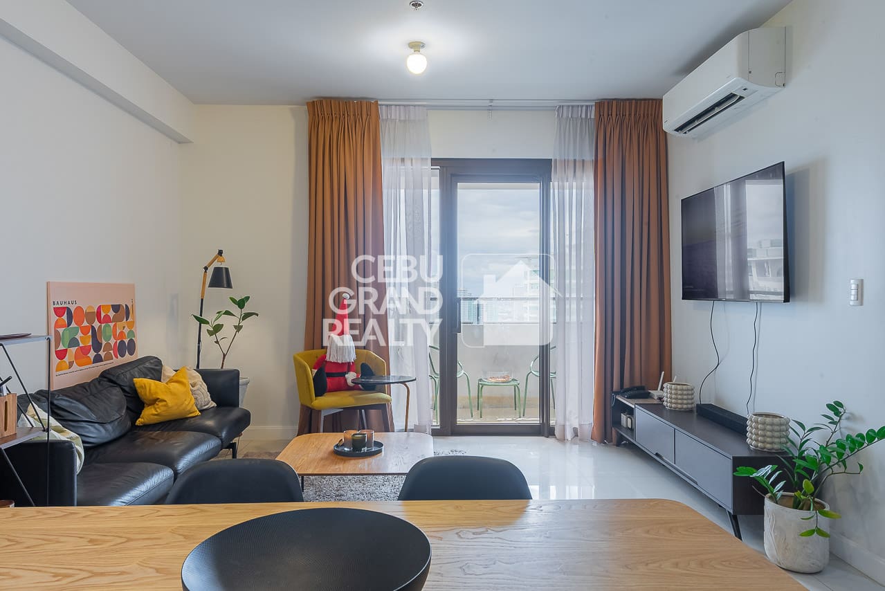 Come see the best of city living in this spectacular high-rise condo for rent with balcony overlooking the city, located in the prime Alcoves building in Cebu Business Park. This beautiful one-bedroom home is perfect for anyone who values style, comfort, and amazing views. As you step inside, you'll immediately feel a sense of modern style, since every detail has been carefully chosen to create a special living space. For instance, the open-plan layout smoothly joins the living, dining, and kitchen areas. In addition, a large wall mirror makes the space feel even bigger and brighter.