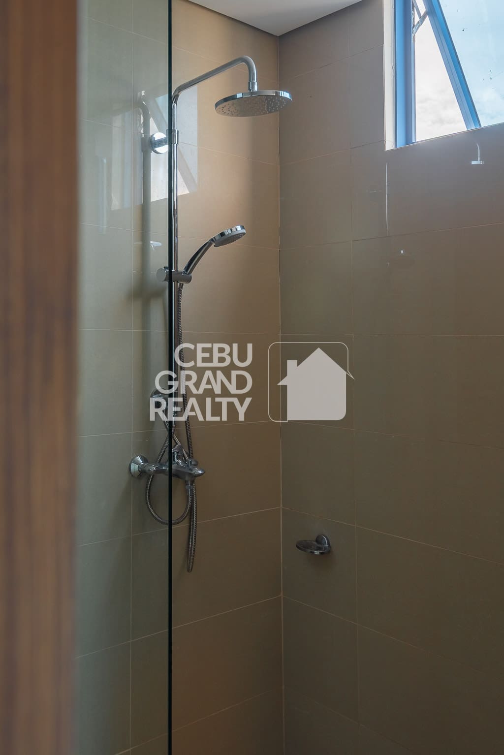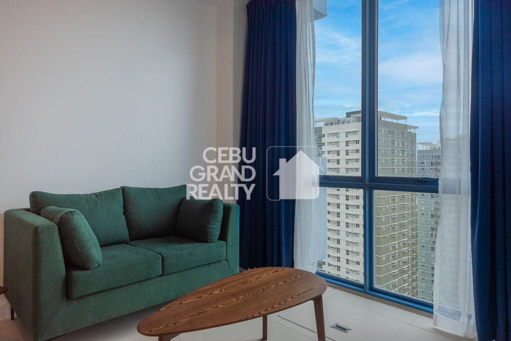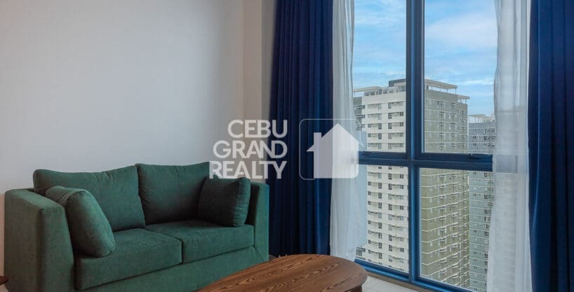 This Stunning Condo with Breathtaking City Views also offers a cozy and stylish bedroom, fitted with a plush bed, elegant headboard, and panoramic windows with blackout curtains for restful nights. Step out onto the private balcony, where you can relax and enjoy panoramic views of Cebu’s vibrant skyline, lush greenery, and even glimpses of the ocean.