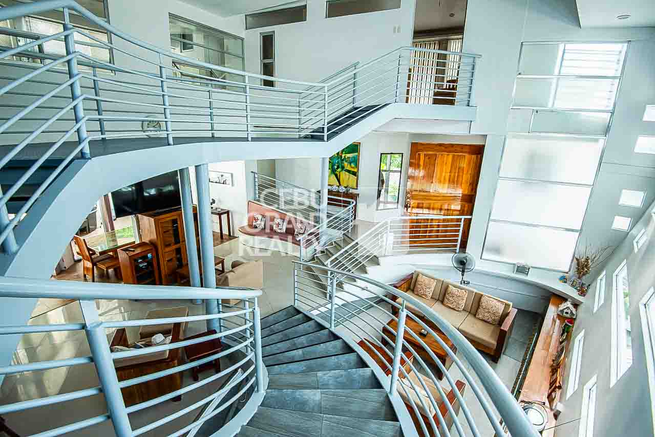 The functional kitchen opens to a spacious dining area, perfect for gatherings, while the home's exterior, with its unique angular windows, adds architectural flair and invites natural light into every corner. Situated in a prime location, this modern multi-story house with a sleek exterior and minimal landscaping represents the pinnacle of contemporary living in Cebu City.