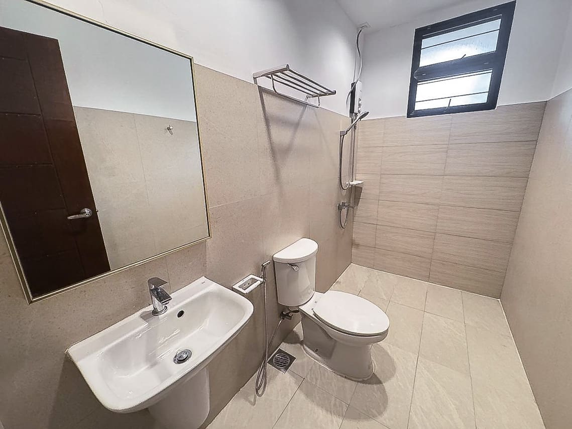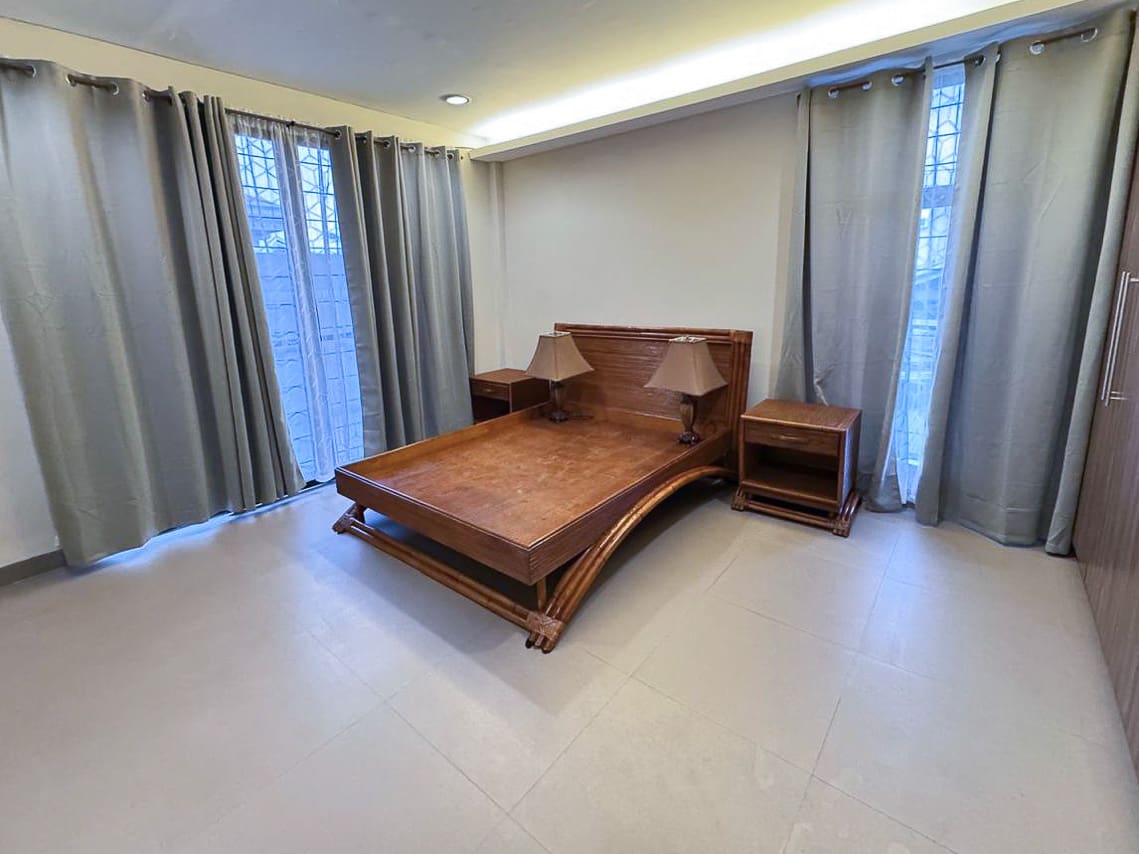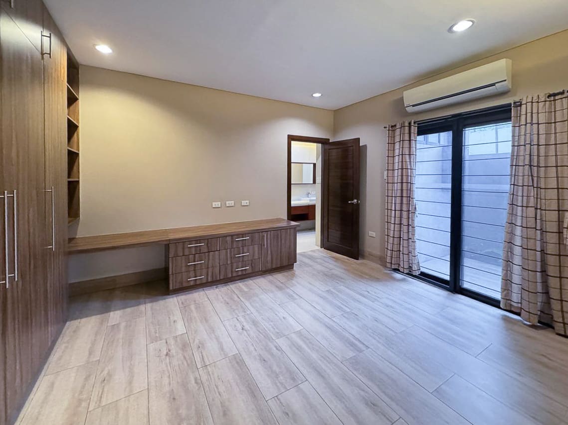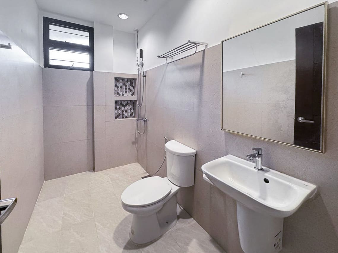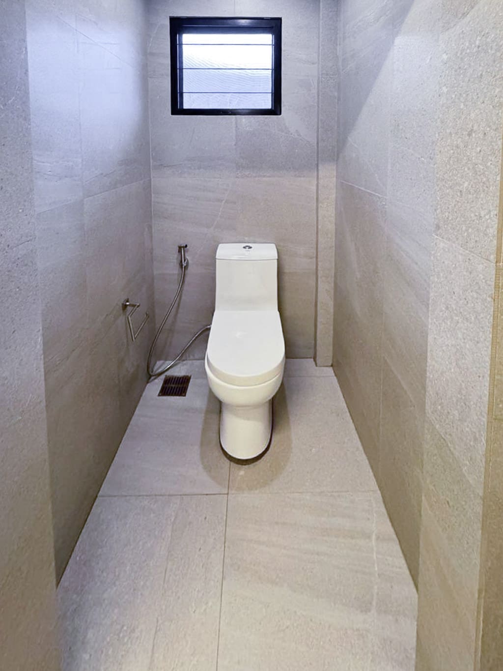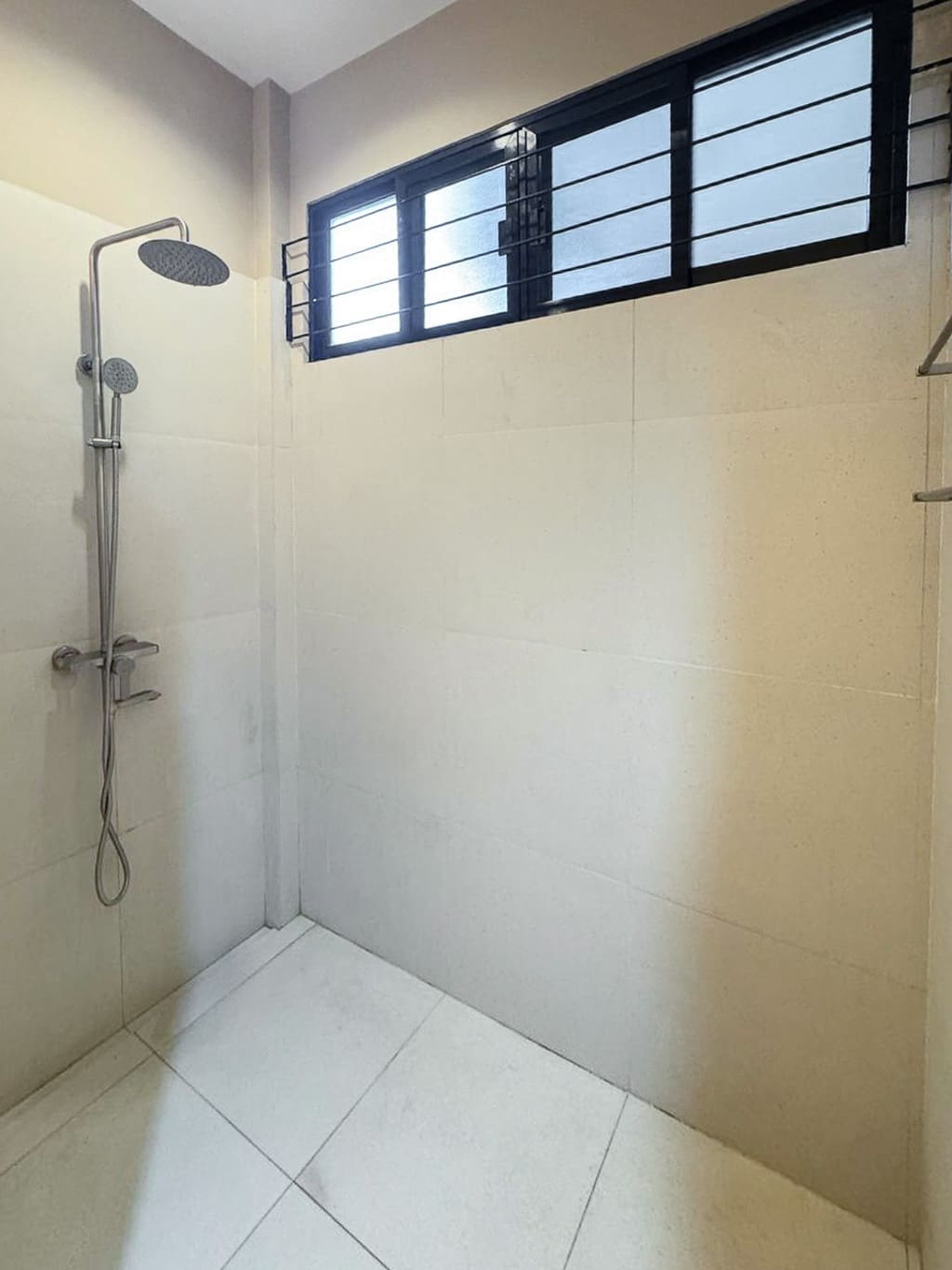Upstairs, spacious bedrooms offer a serene escape. Each room is designed with neutral tones, minimalist lines, and subtle textures, bringing to life the essence of Sunlit Charm Meets Sleek Lines. Large curtains soften the ambiance while ensuring privacy when needed, and built-in air-conditioning adds comfort across seasons.