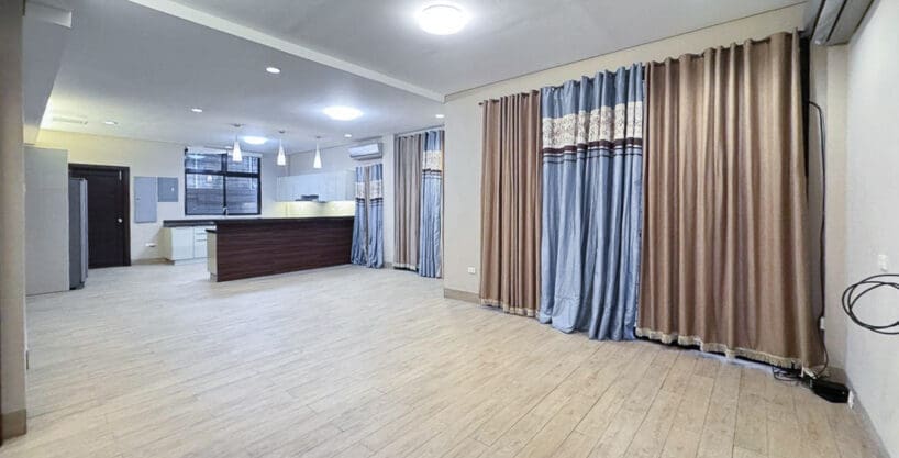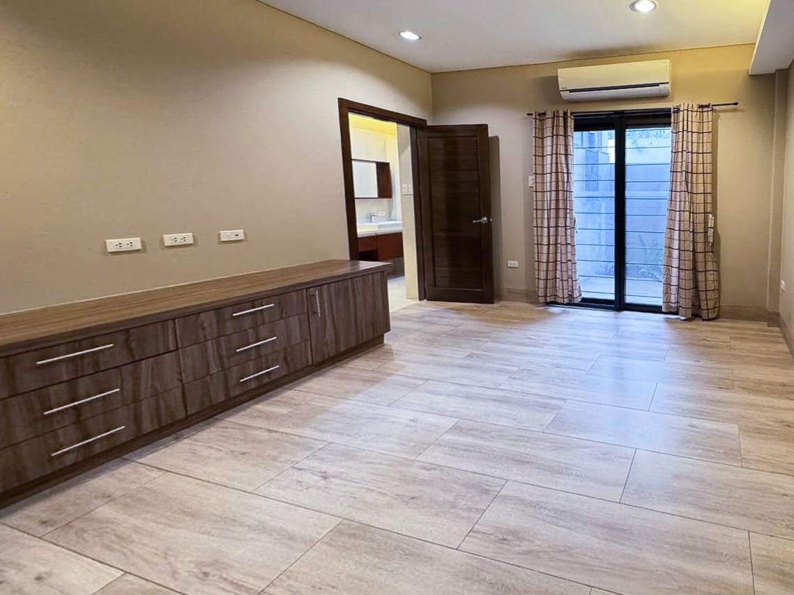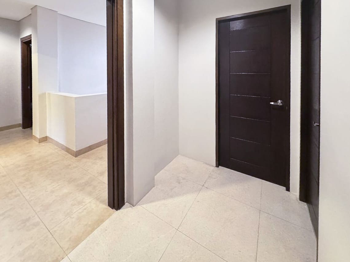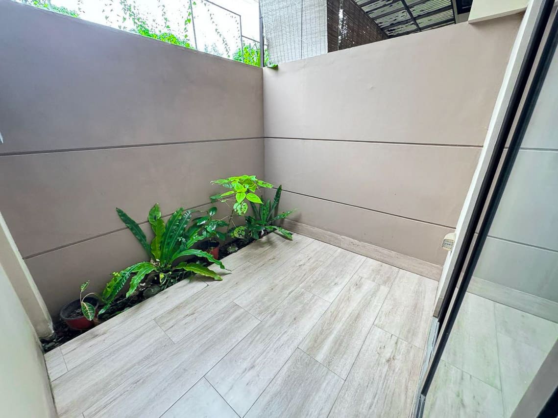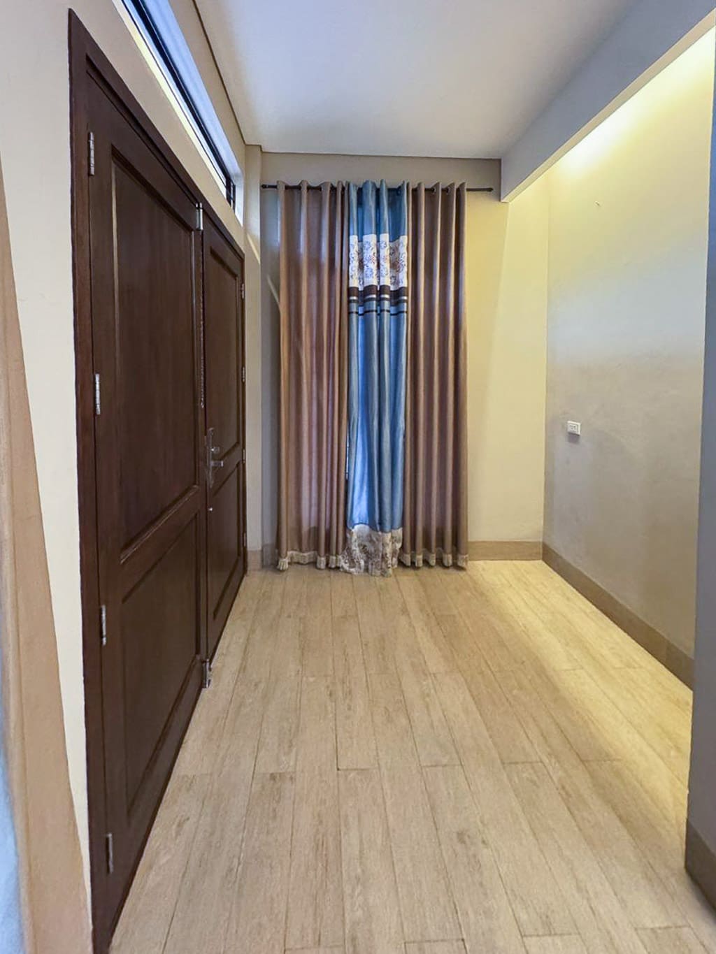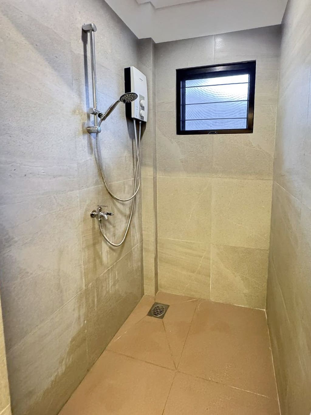 Upstairs, spacious bedrooms offer a serene escape. Each room is designed with neutral tones, minimalist lines, and subtle textures, bringing to life the essence of Sunlit Charm Meets Sleek Lines. Large curtains soften the ambiance while ensuring privacy when needed, and built-in air-conditioning adds comfort across seasons.