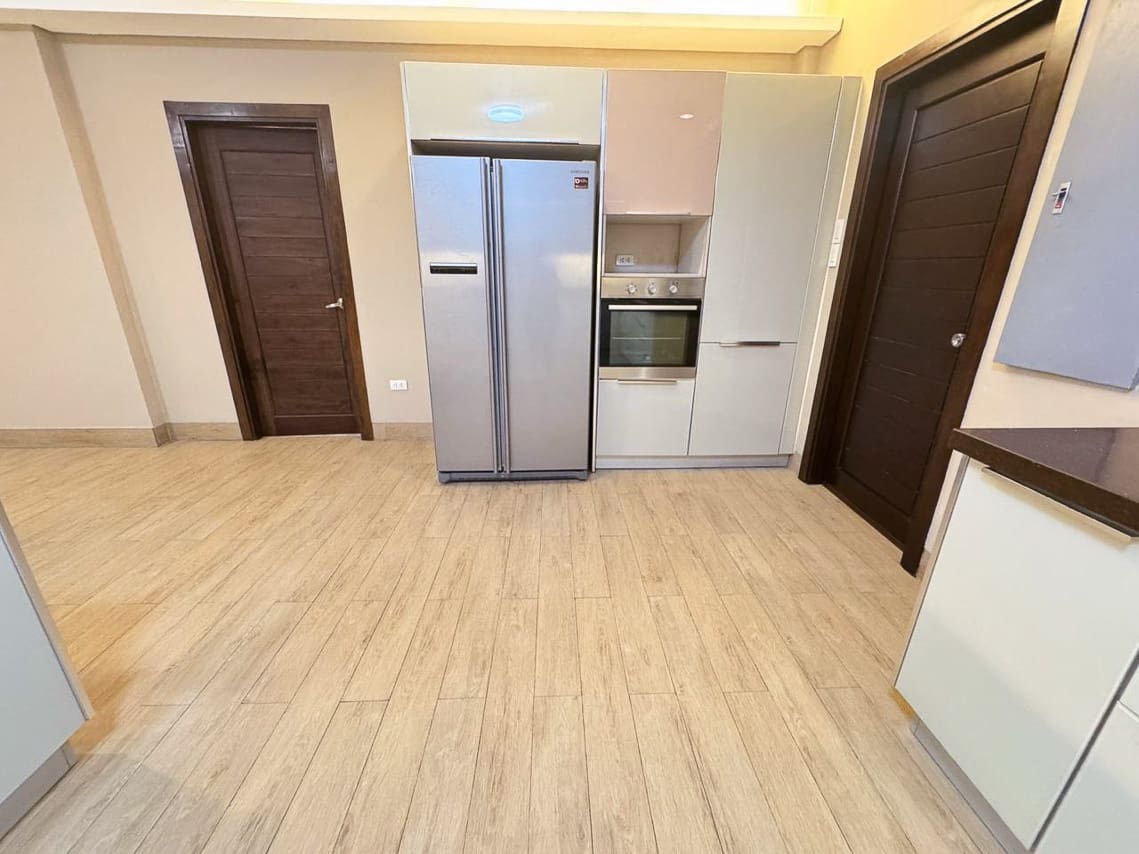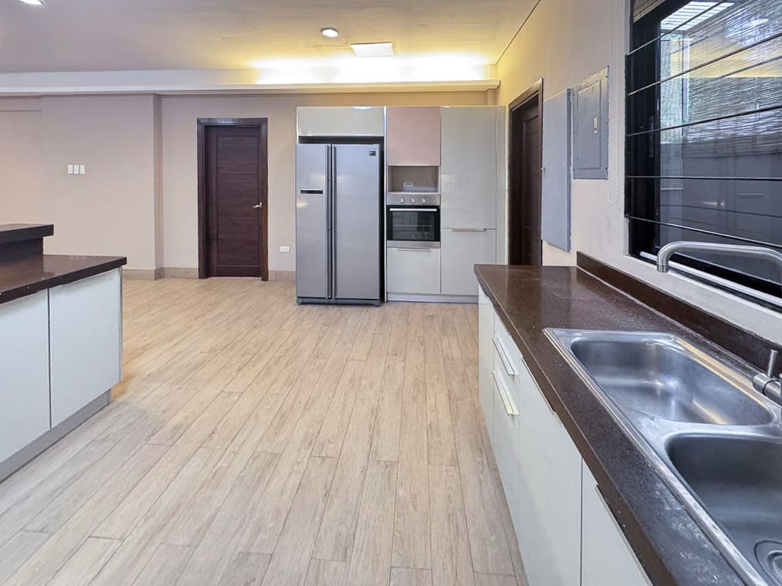 • Fully equipped kitchen with built-in oven, refrigerator, and dual sink
